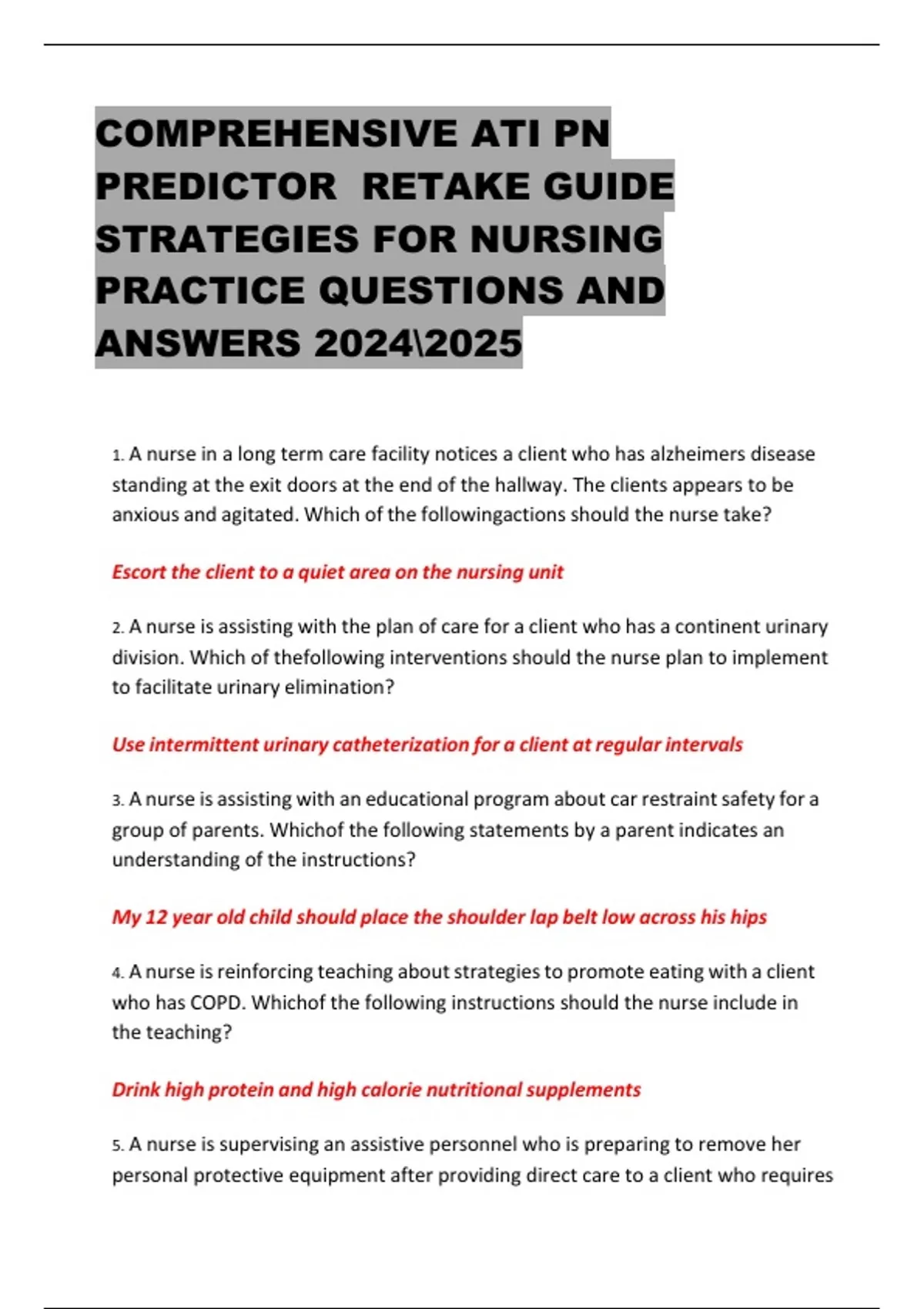 COMPREHENSIVE ATI PN PREDICTOR RETAKE GUIDE STRATEGIES FOR NURSING PRACTICE QUESTIONS AND ANSWERS 2024202