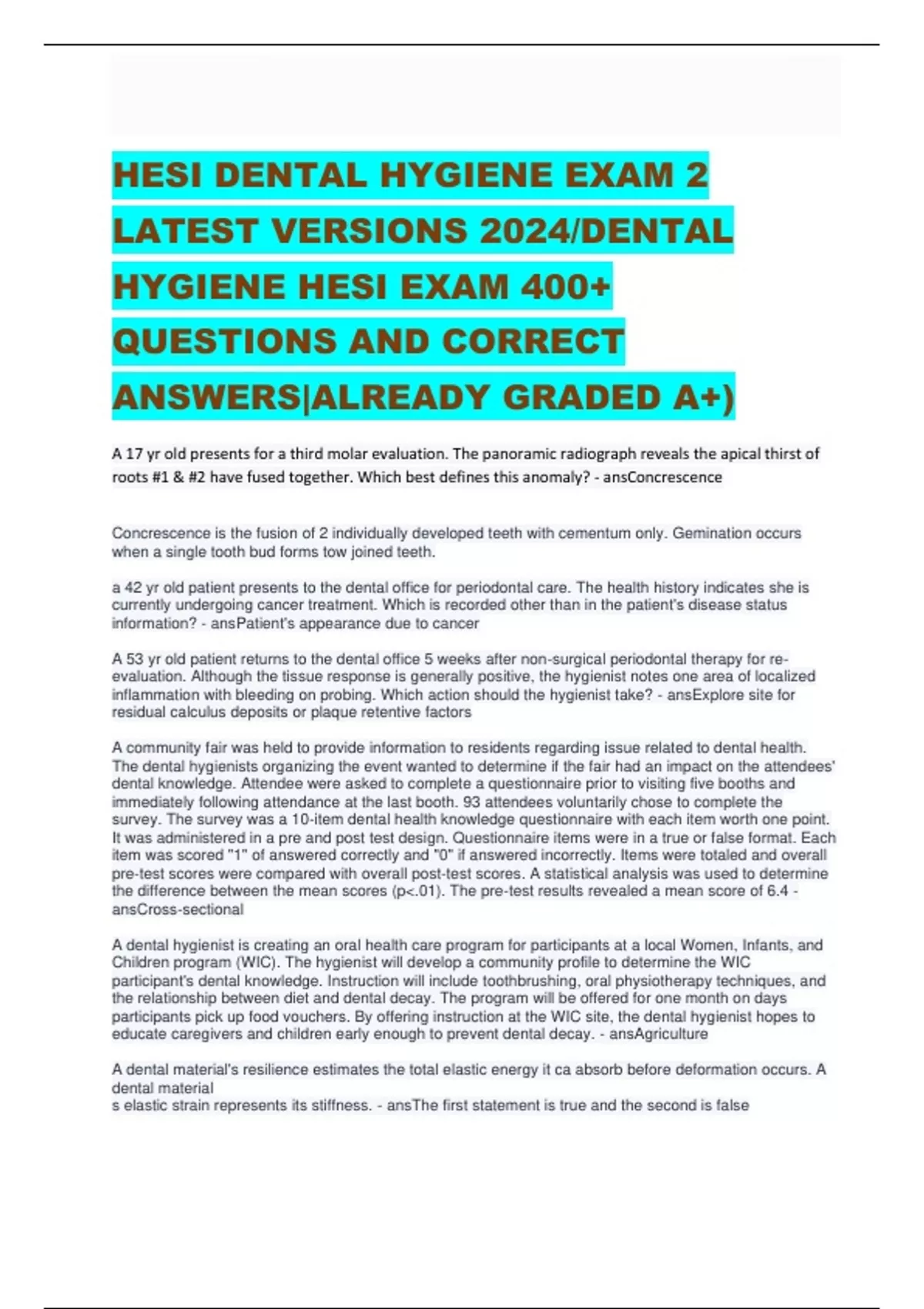 - HESI DENTAL HYGIENE EXM 2 LATET VERIONS 2024/D