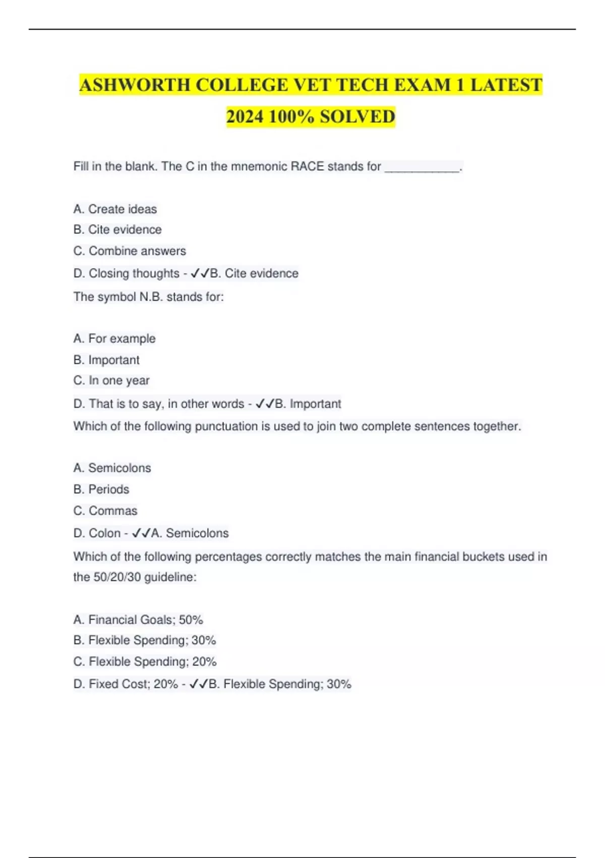 ASHWORTH COLLEGE VET TECH EXAM 1 LATEST 2024 100% SOLVED