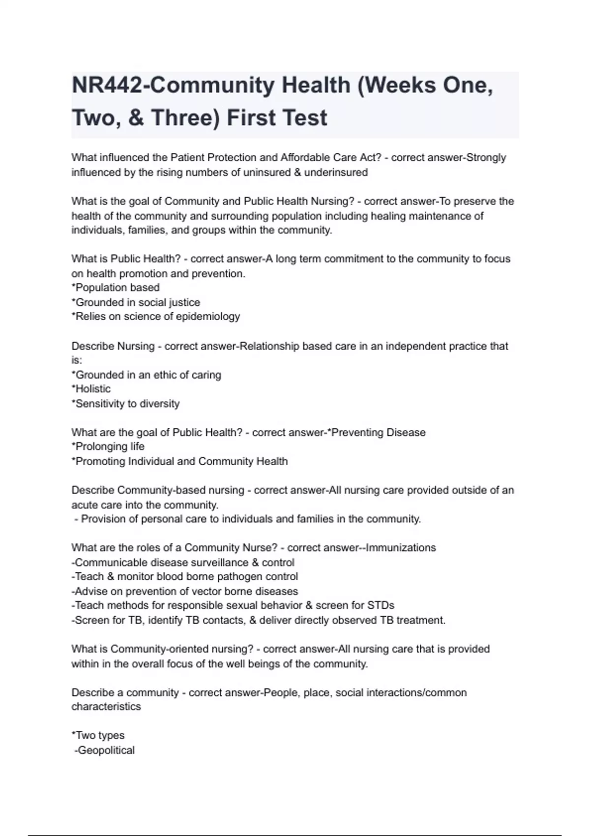 NR442-Community Health (Weeks One, Two, & Three) First Test