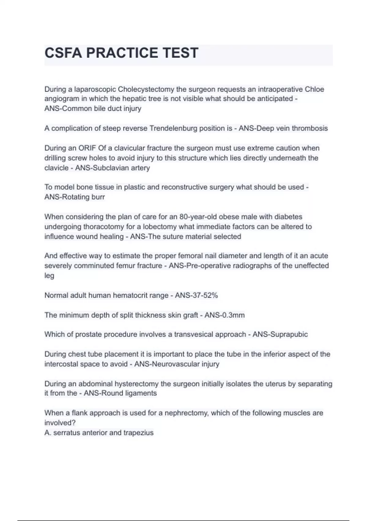 CSFA PRACTICE TEST