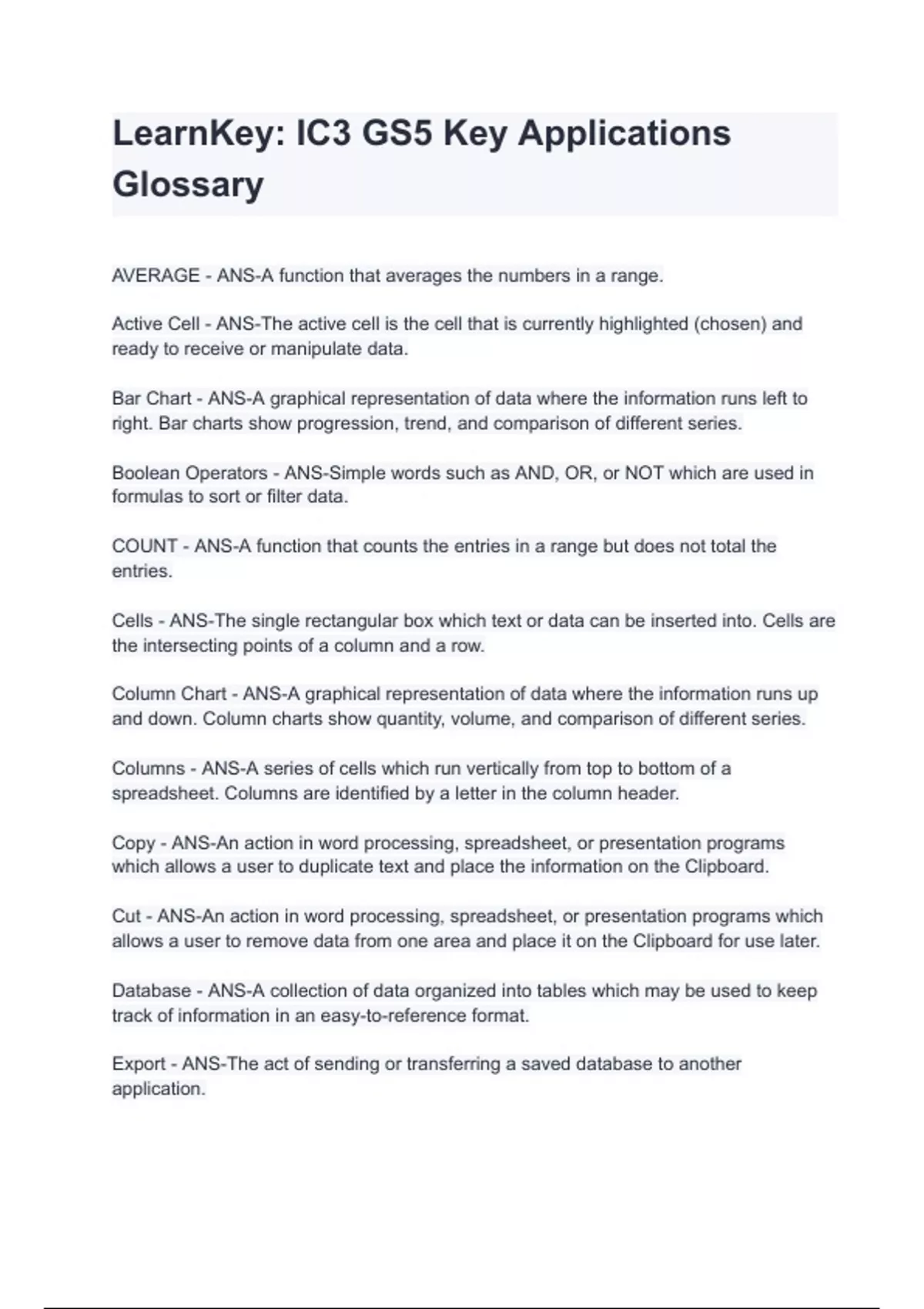 LearnKey_ IC3 GS5 Key Applications Glossary