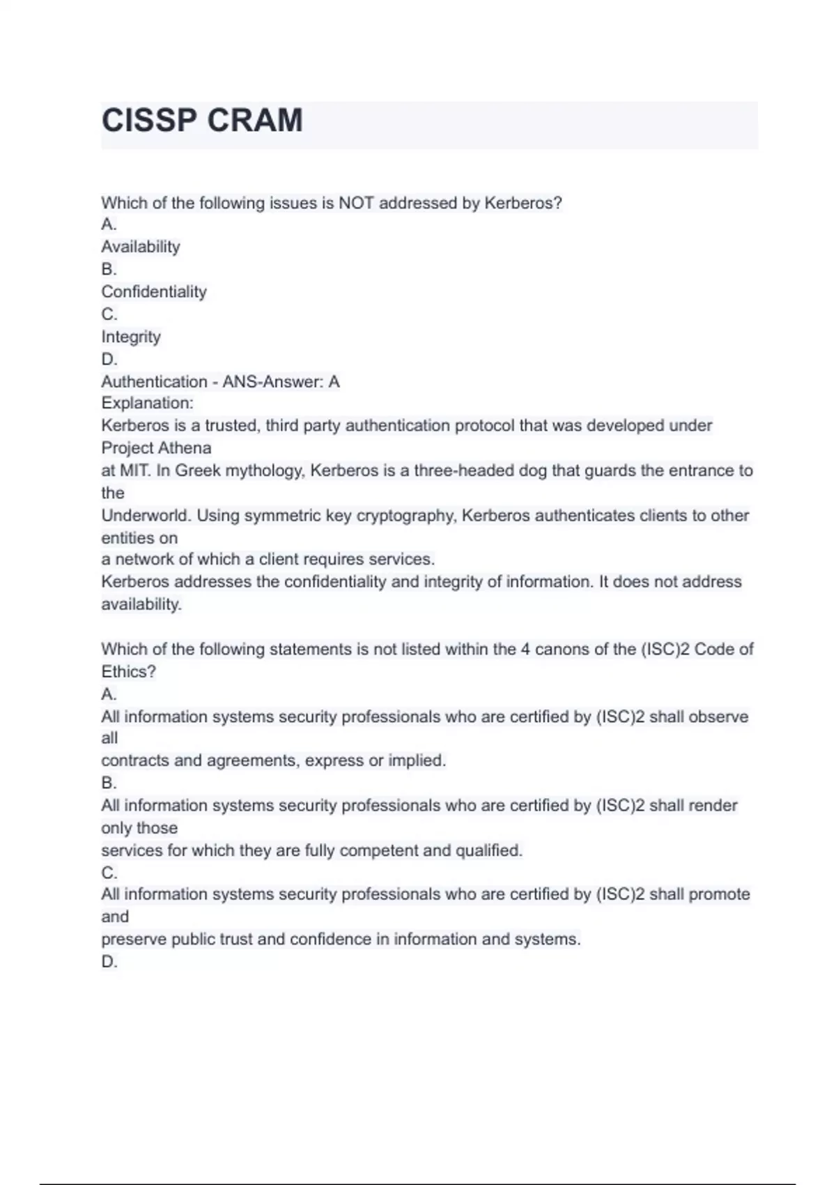 Exam of 7 pages for the course City Spies at City Spies (CISSP CRAM)