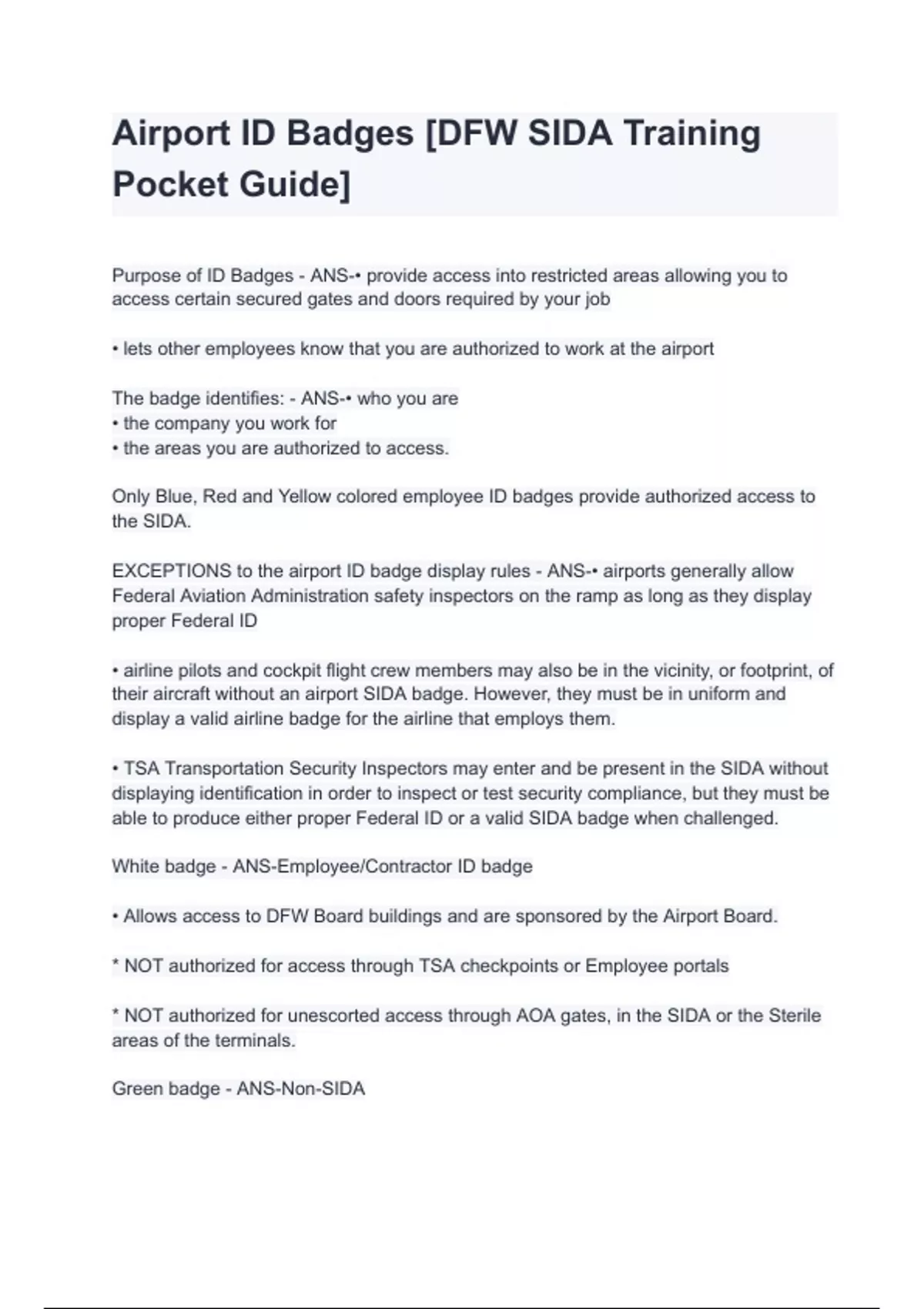Airport ID Badges [DFW SIDA Training Pocket Guide]