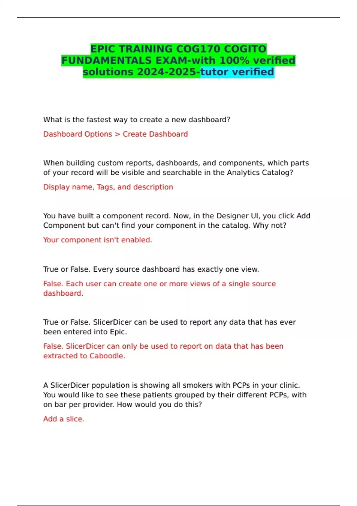 EPIC TRAINING COG170 COGITO FUNDAMENTALS EXAM-with 100% verified solutions -tutor verified