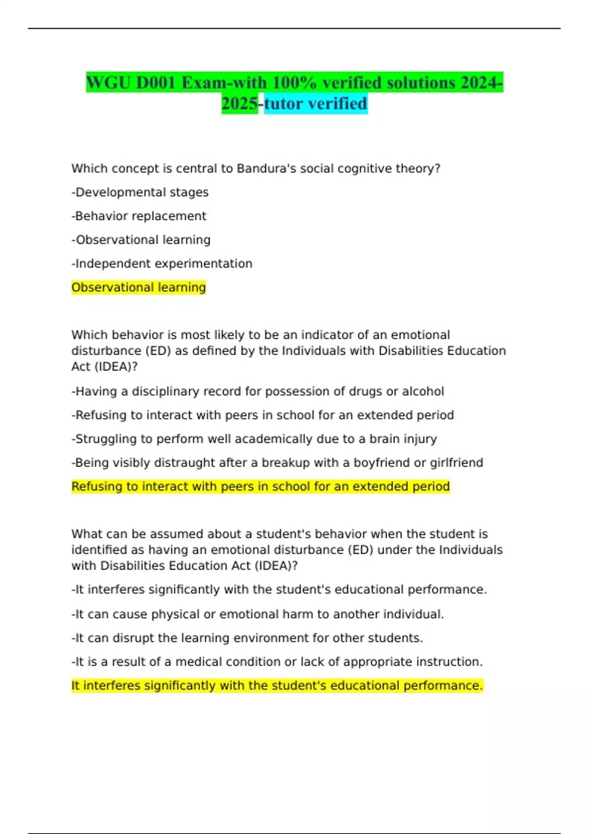 WGU D001 Exam-with 100% verified solutions -tutor verified
