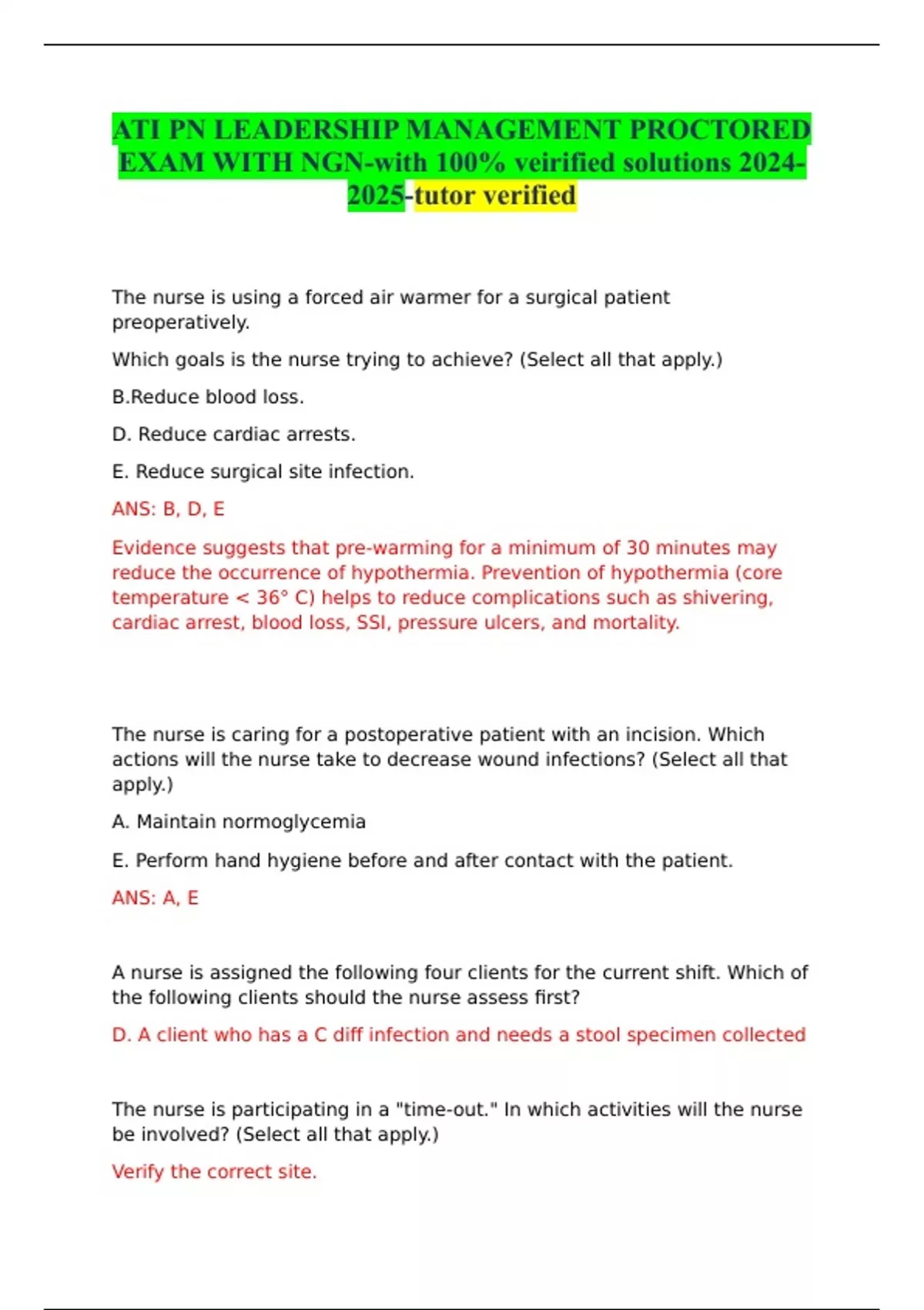 ATI PN LEADERSHIP MANAGEMENT PROCTORED EXAM WITH NGN-with 100% veirified solutions -tutor verified