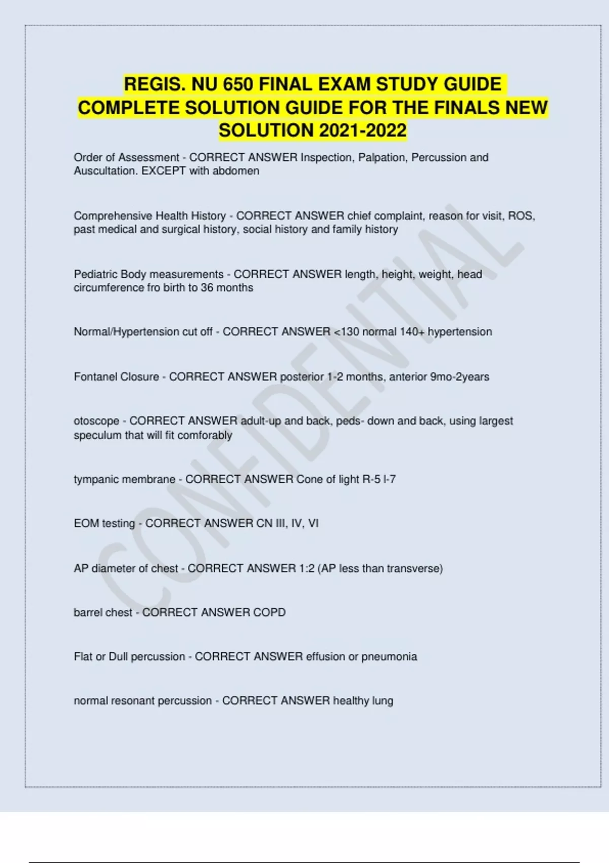 REGIS. NU 650 FINAL EXAM STUDY GUIDE COMPLETE SOLUTION GUIDE FOR THE FINALS NEW SOLUTION