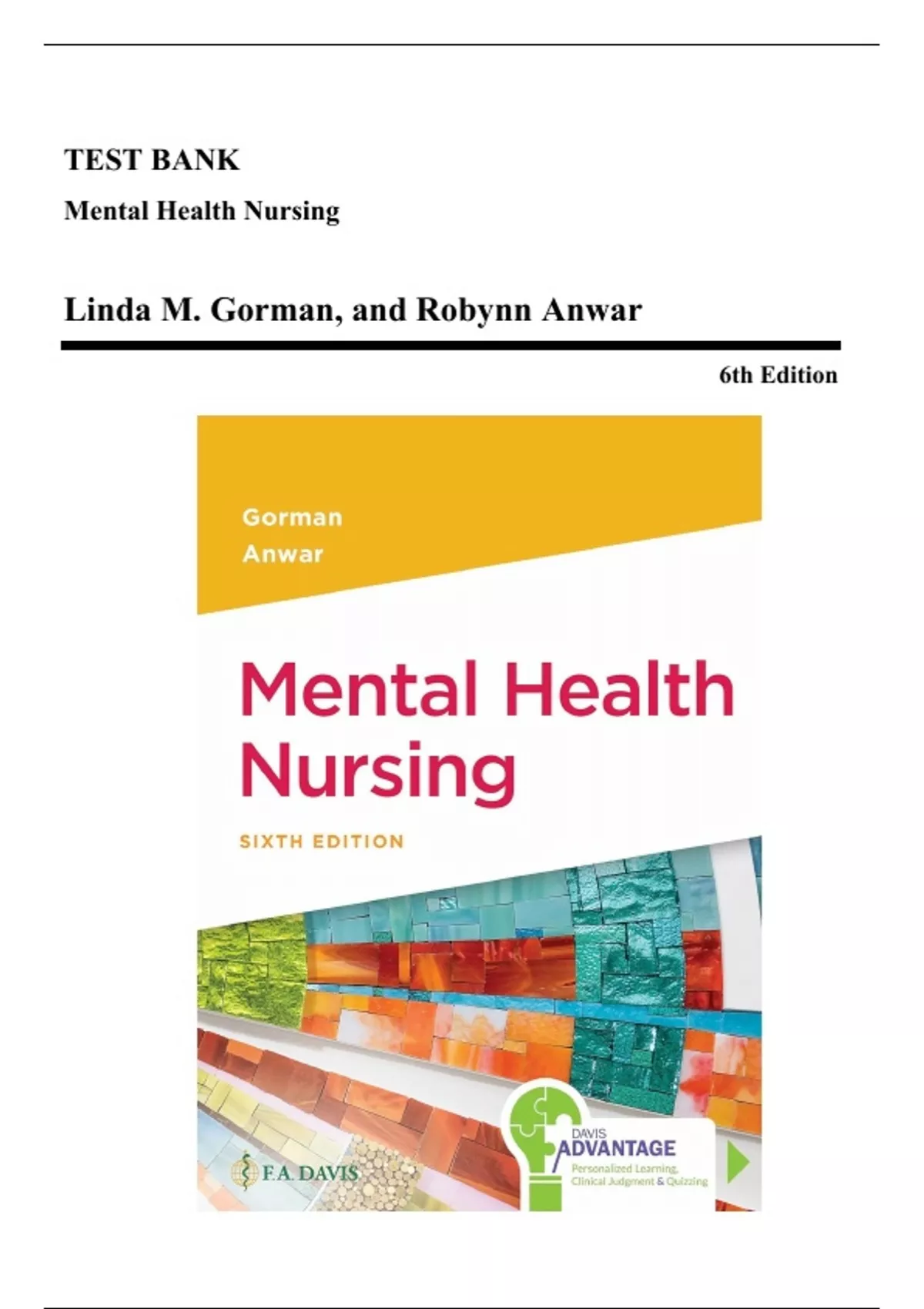 ______________________________________________________________________________________________Test Bank - Mental Health Nursing, 6th Edition (Gorman, 2023)