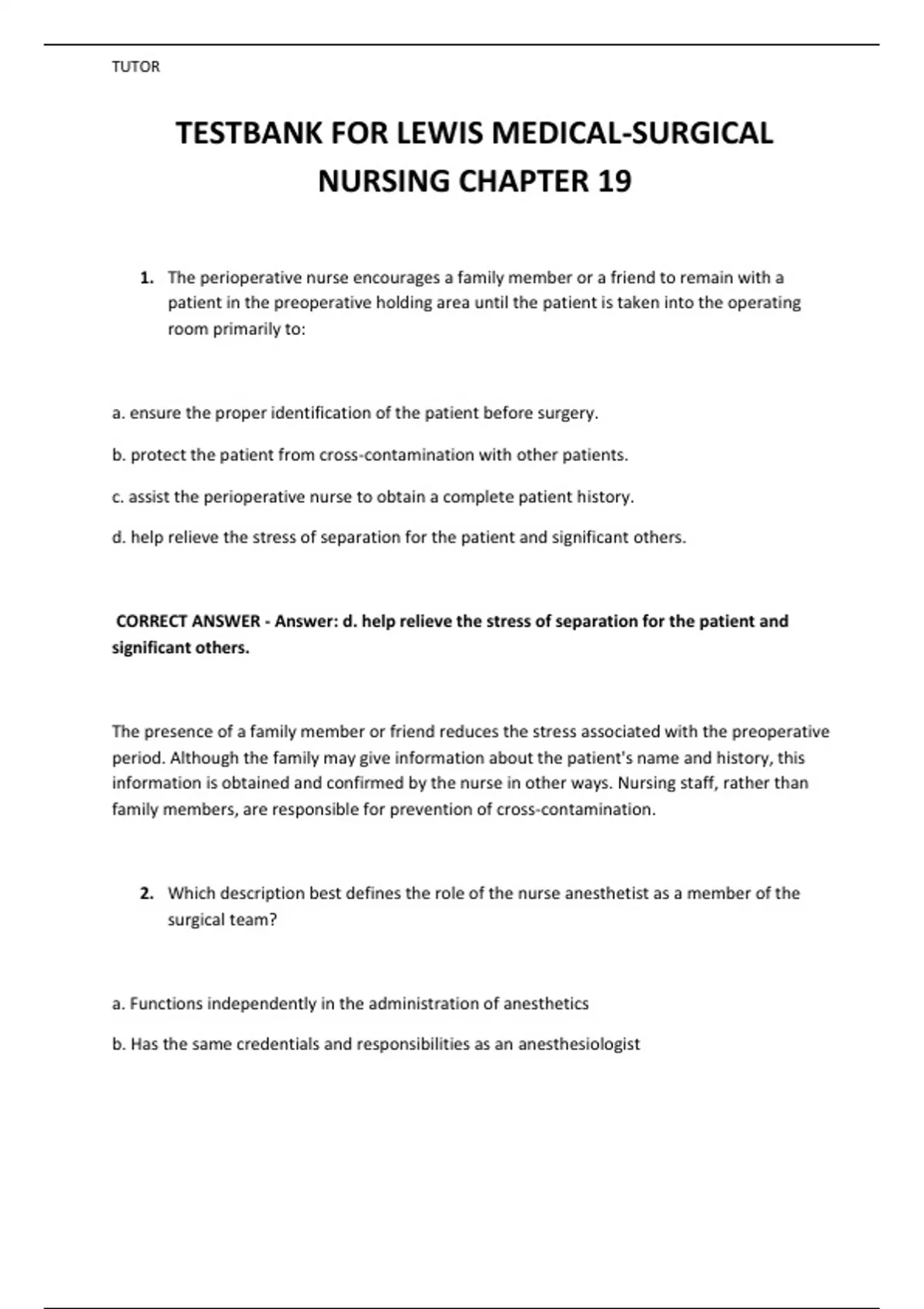 TESTBANK FOR LEWIS MEDICAL-SURGICAL NURSING CHAPTER 19