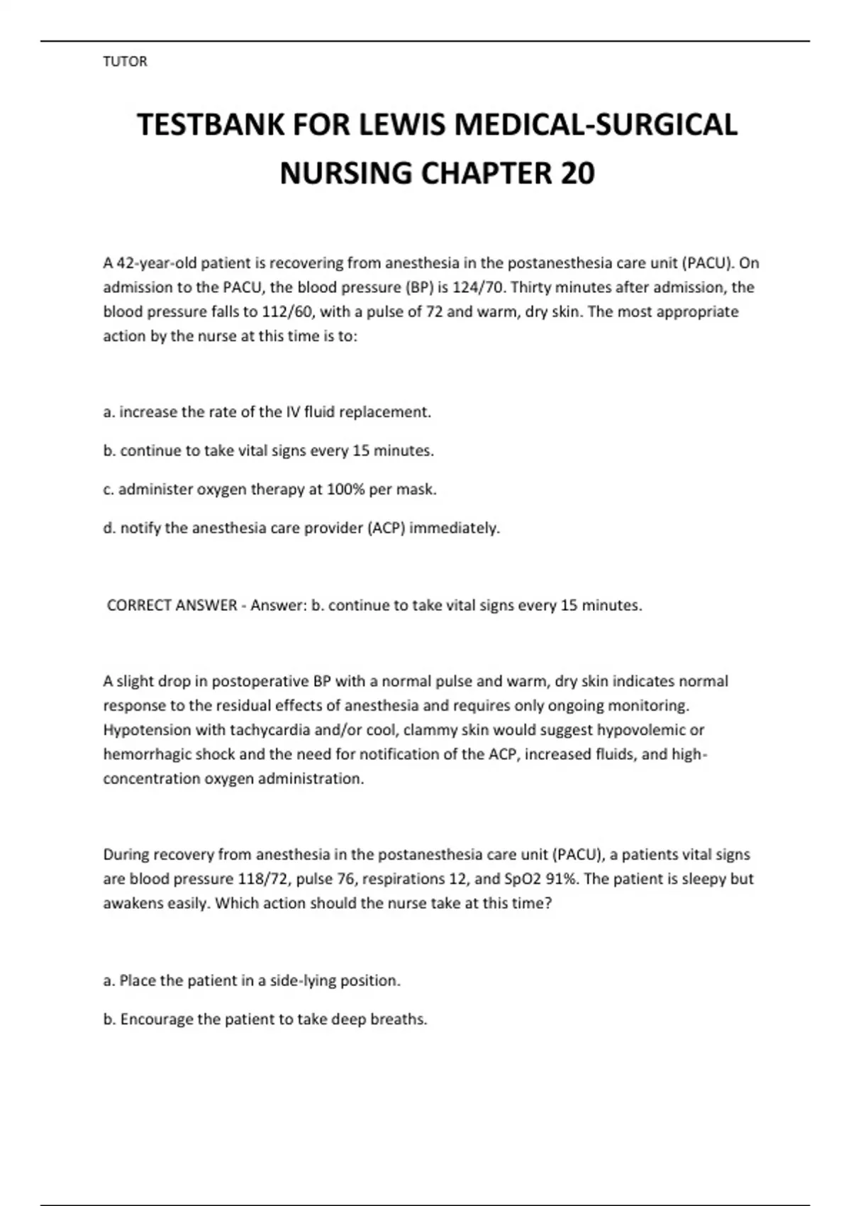 TESTBANK FOR LEWIS MEDICAL-SURGICAL NURSING CHAPTER 20