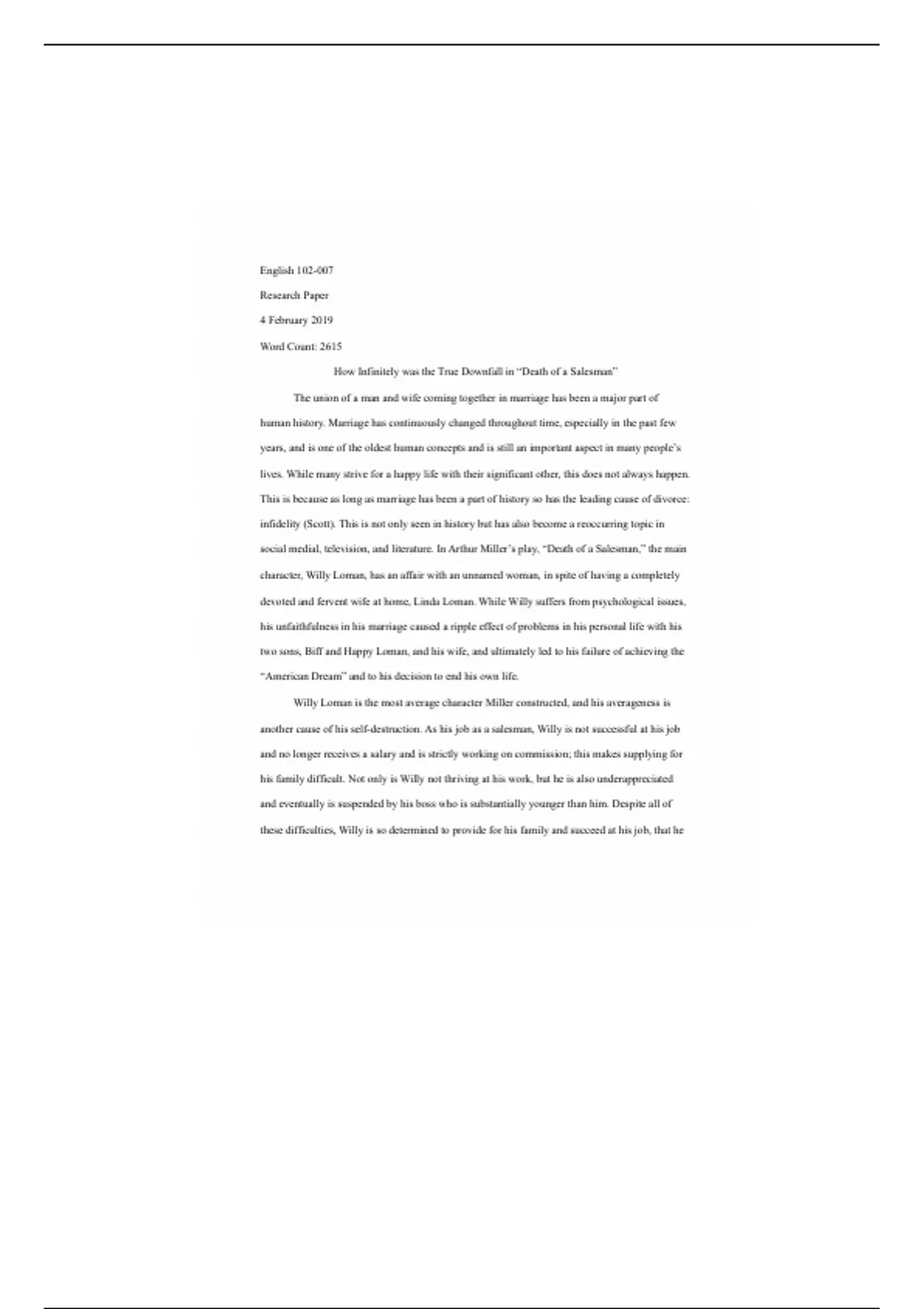 This is a comprehensive and detailed research essay for the book " Death of a salesman. Quality stuff!! U'll need it!!
