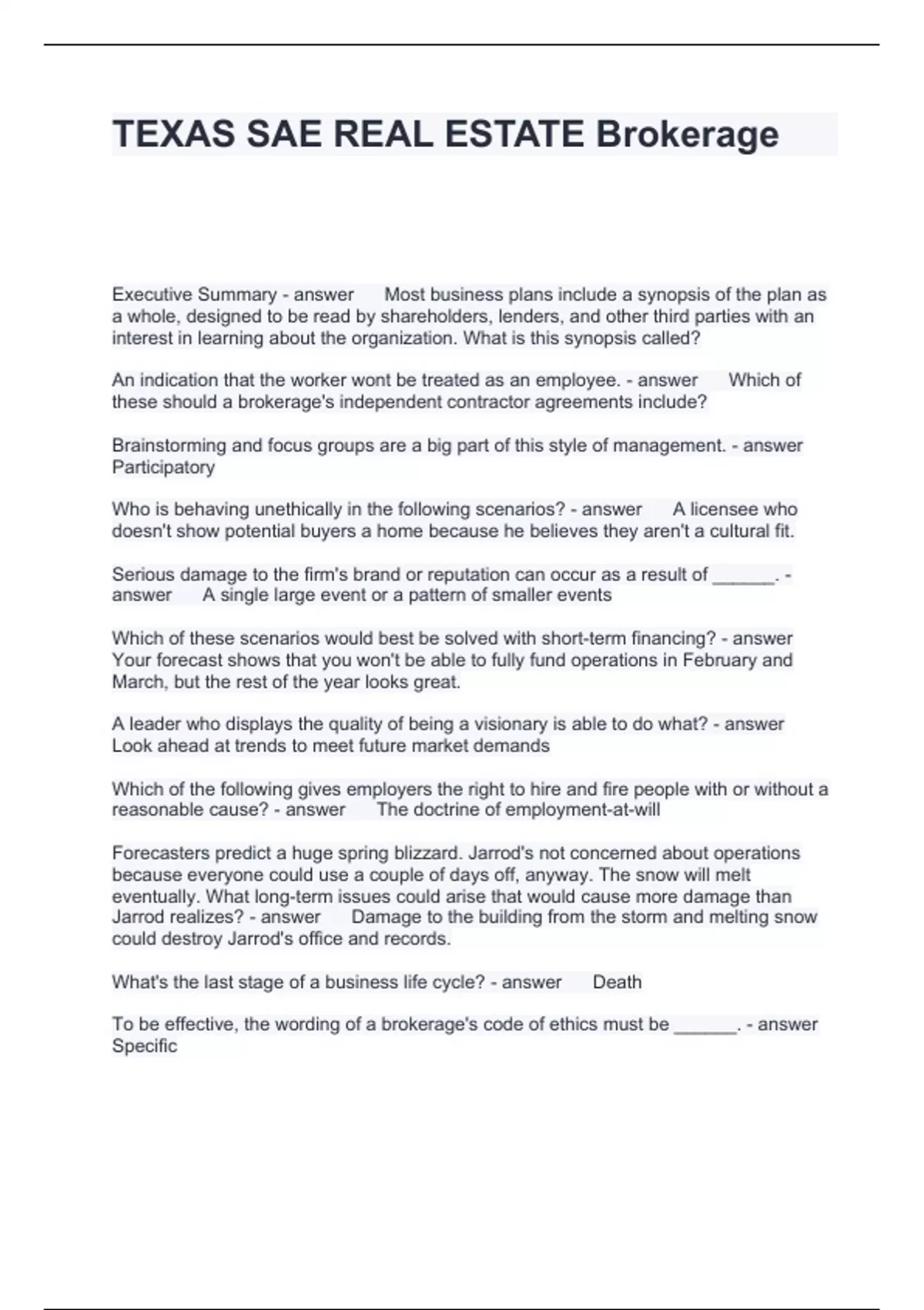 TEXAS SAE REAL ESTATE Brokerage Questions with correct Answers