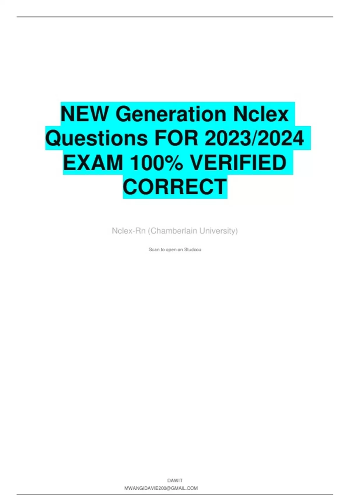 NEW Generation Nclex Questions FOR 2023/2024 EXAM 100% VERIFIED CORRECT