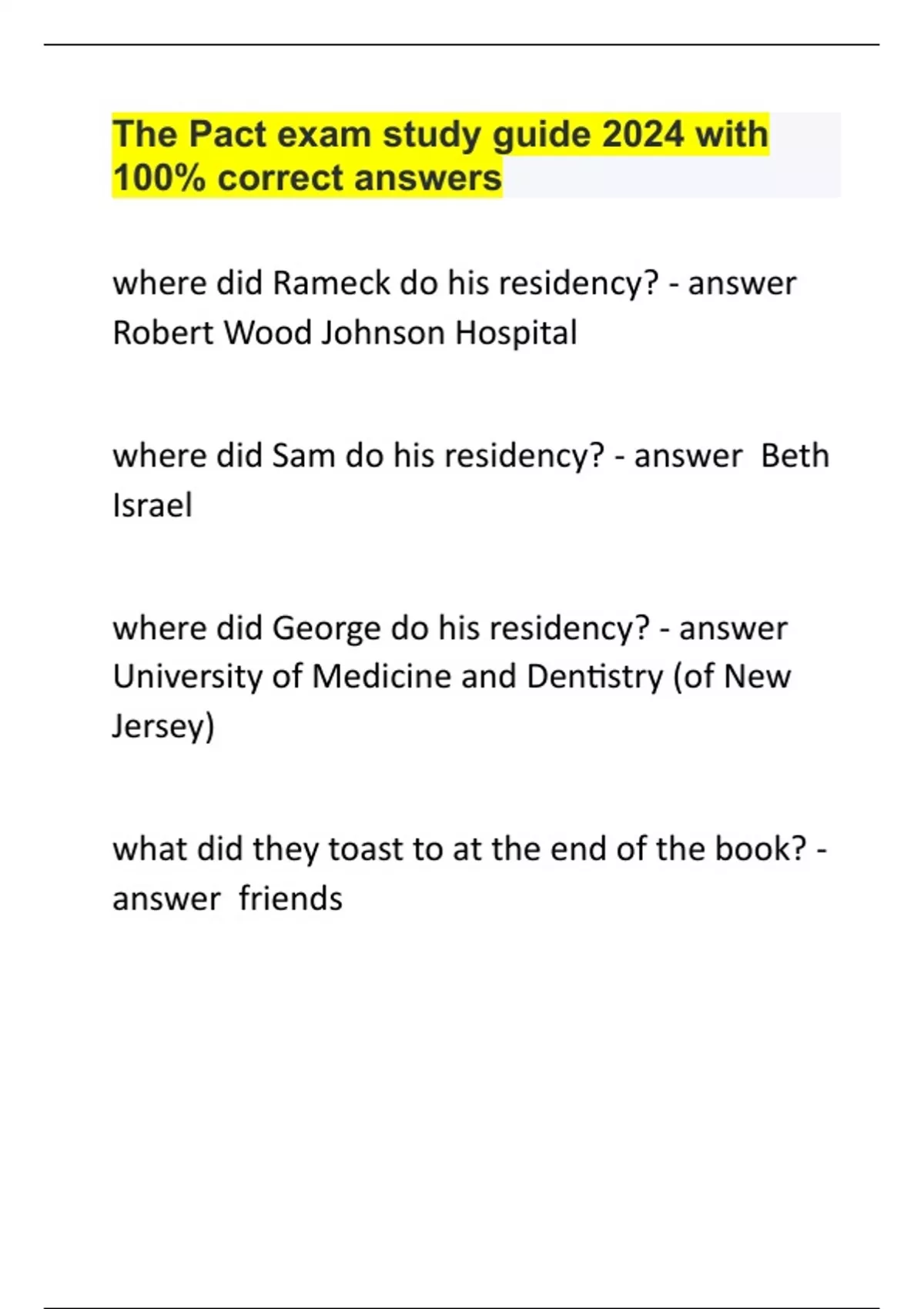 where did Rameck do his residency? Robert Wood Johnson Hospital where did Sam do his residency? Beth Israel where did George do his residency? University of Medicine and Dentistry (of New Jersey) what did they toast to at the end of the book? friends where does George fall in between when it comes to study habits? skeptical analysis and strong work ethic where did Sam feel truly in happy for the first time in years? doing rounds in the hospital what was the hardest thing that Rameck ever did? letting Ma go without answers about why she died (closure) what did Sam make the mistake of accepting in his later years? (school wise) a residency at the University of Maryland (in internal medicine) who wanted to be rappers in college? George & Rameck which of the 3 doctors finished their residency in Newark? all 3 when med students around the nation find out where they got accepted to residencies Match Day where did Rameck and Sam go for pre med school? Rutgers where did Sam and Rameck go for med school? Robert Wood Johnson where did Sam put his emotional turmoil and struggles? In a box inside of his head what was Rameck wrongfully charged with? interference with a police officer and possession of a deadly weapon (followed by cops and then pulled over + car searched) what program did George make Sam and Rameck join? the pre-med/pre-dental PLUS program what university could Rameck not afford? Howard University who did Sam rob and for what? drug dealers for money who was Carla Dickson influenced by? Jawanza Kunjufu where did each doctor go to college? all 3 went to Seton Hall where did George go to elementary school? Spencer Elementary why did Rameck go to juvenile detention? he stabbed a crackhead behind an elementary school who's mom couldn't read? Sam's where did each of the doctors grow up? Newark, New Jersey where did Rameck feel most secure? at Ma's house in Plainsfield where did each of the doctors go to high school? University High where was George's family from? South Carolina what did Sam do to stay out of trouble as a kid? took kungfu lessons with Reggie who did the doctors write the pact for? those struggling to survive why was graduating such a big deal for the doctors? because they were the first in their families to actually graduate (high school let alone college and medical school) where did Sam earn his medical degree? Robert Wood Johnson