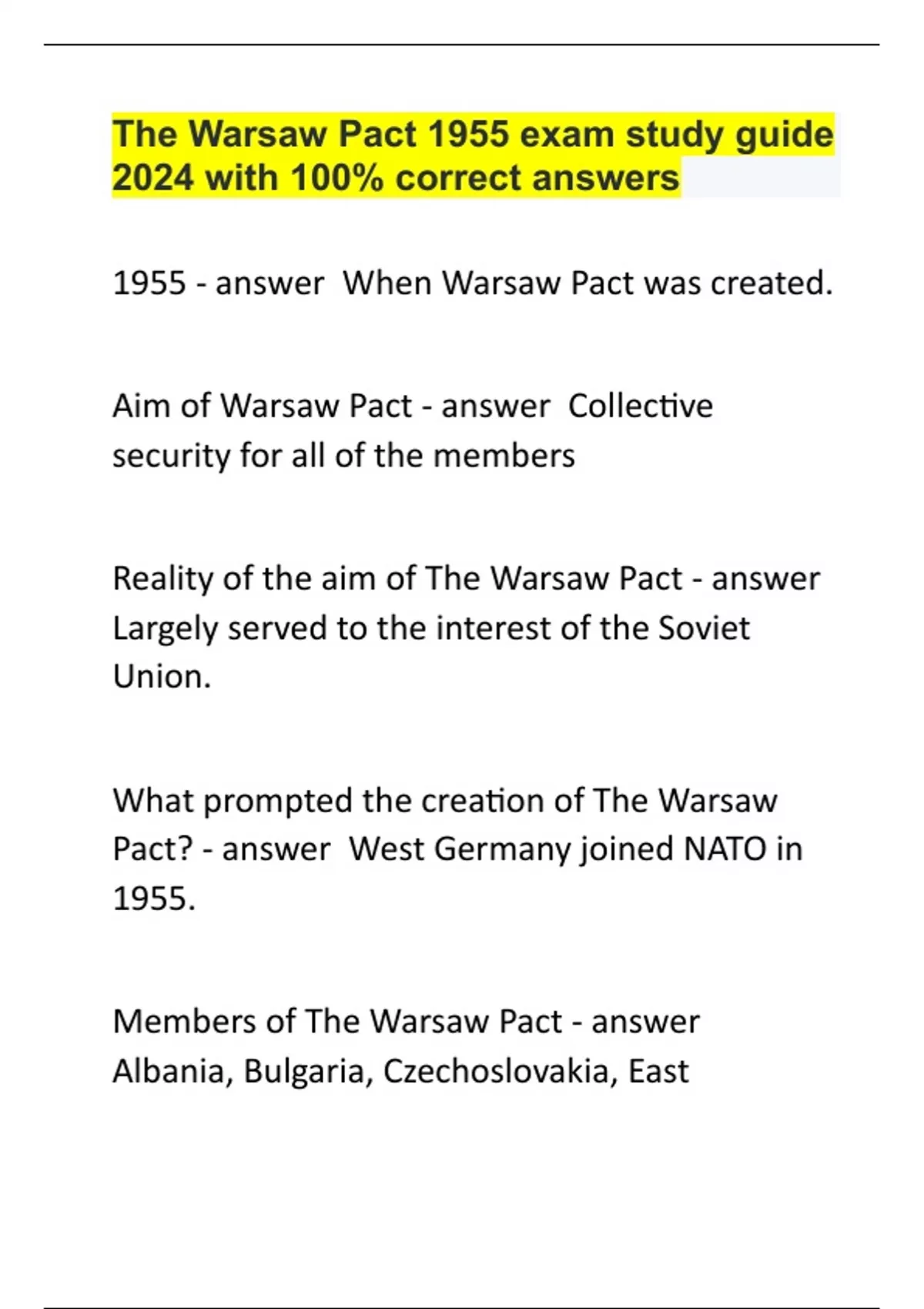 the warsaw pact 1955 exam study guide 2024