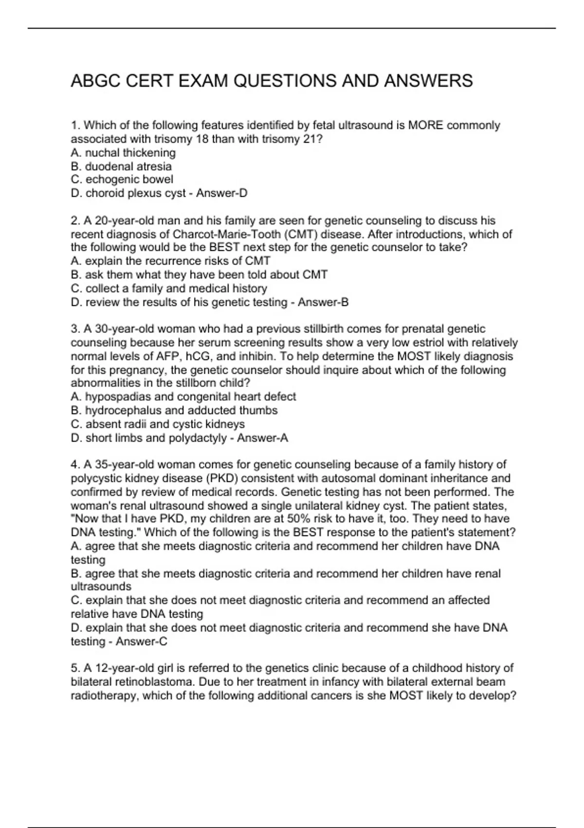 abgc cert exam questions and answers