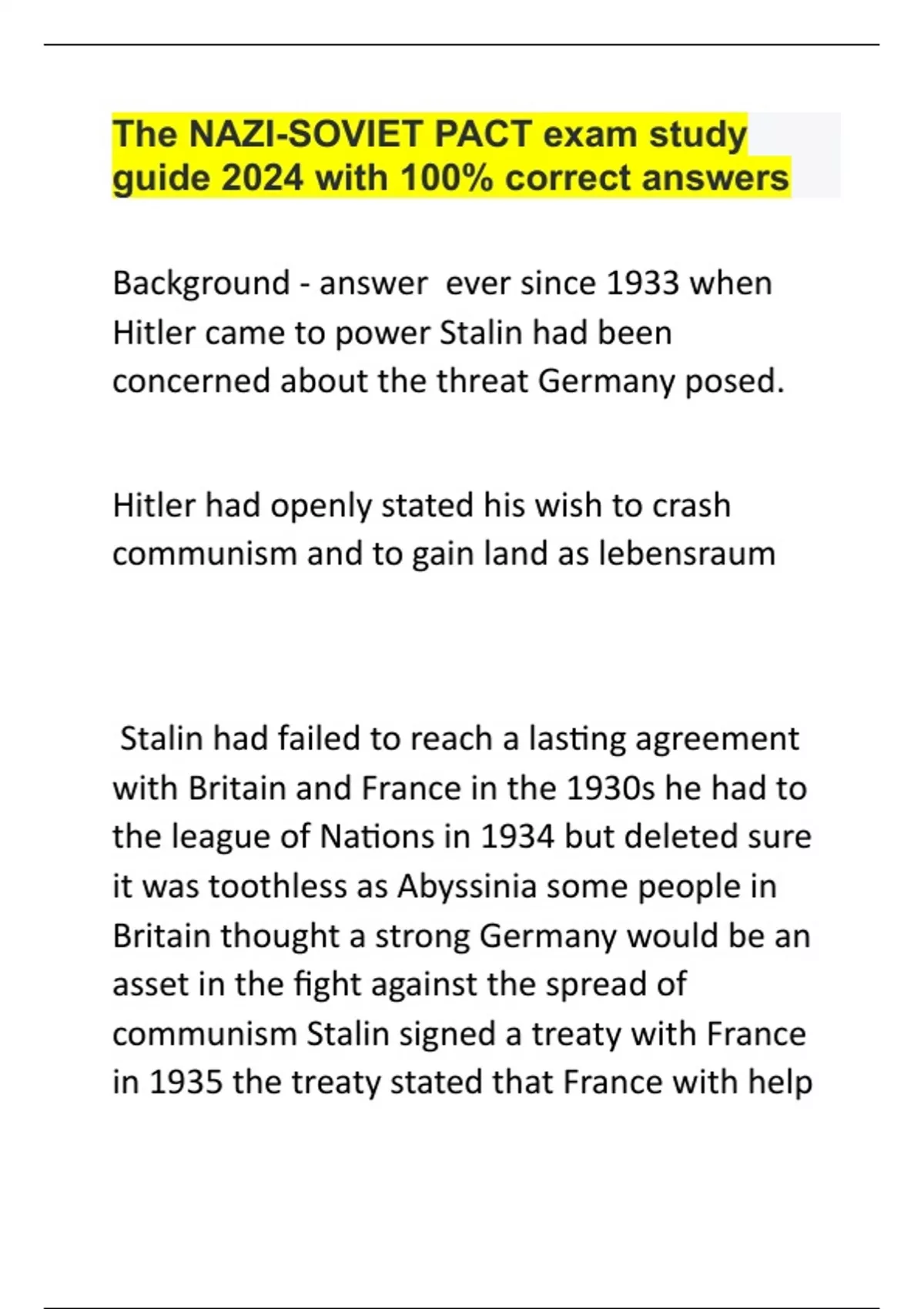 the nazi soviet pact exam study guide 2024