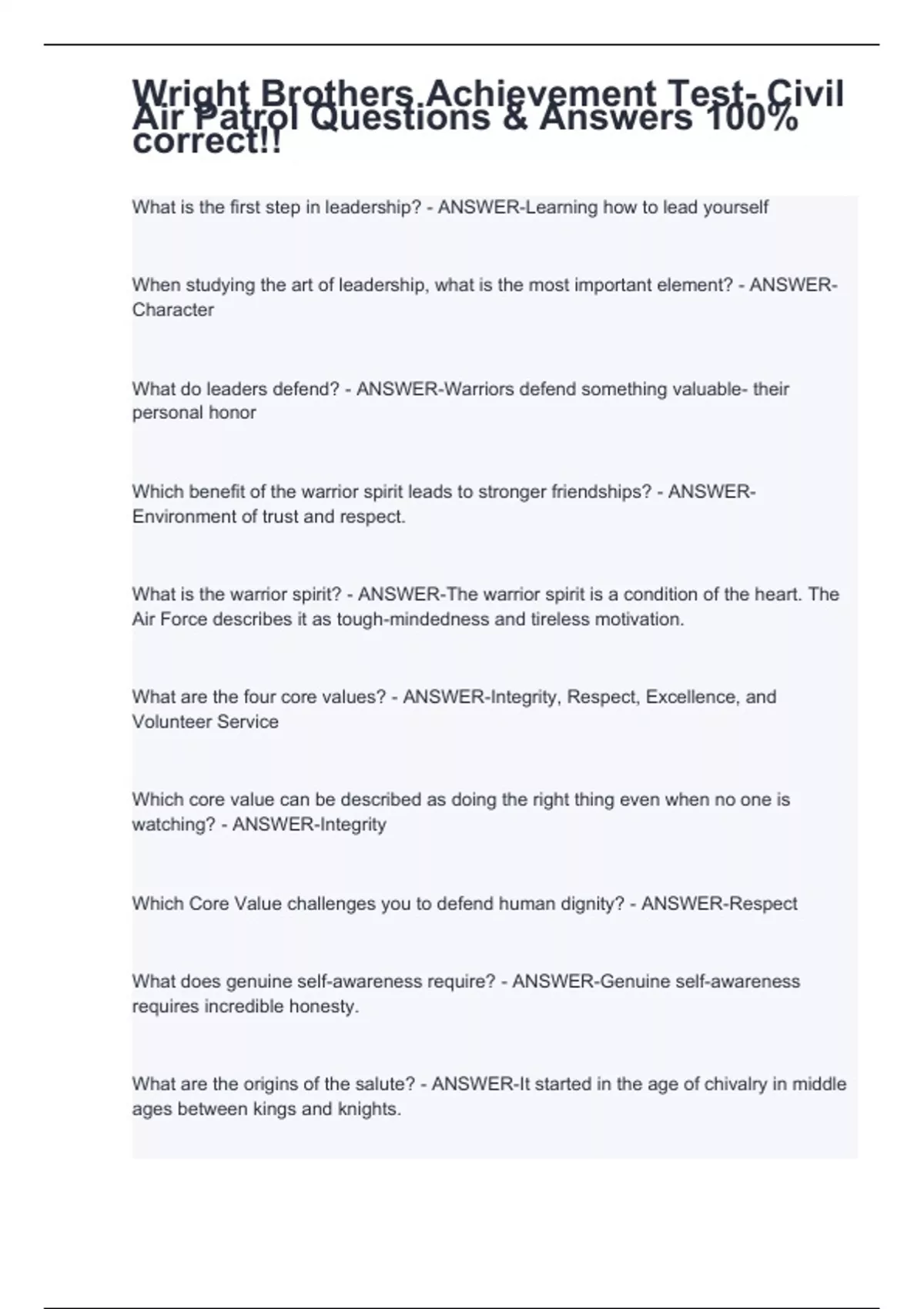 Wright Brothers Achievement Test- Civil Air Patrol Questions & Answers 100% correct!!