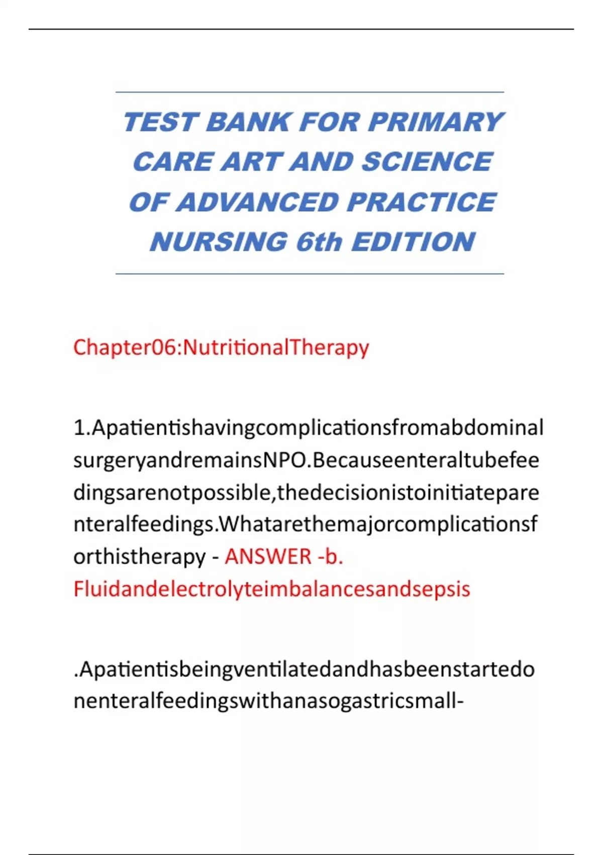 TEST BANK FOR PRIMARY CARE ART AND SCIENCE OF ADVANCED PRACTICE NURSING 6th