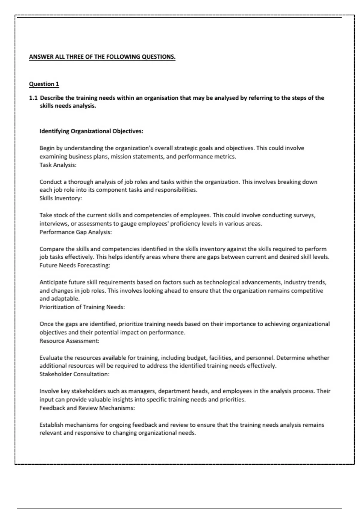 1.1 Describe the training needs within an organisation that may be analysed by referring to the steps of the