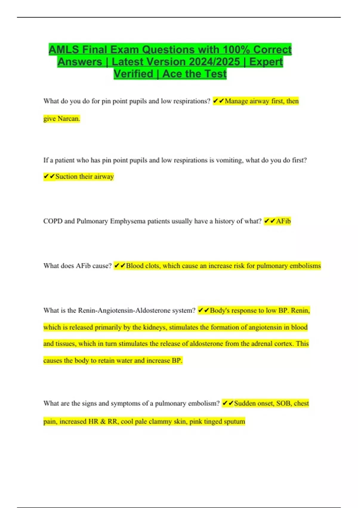 amls final exam questions with 100 correct answer