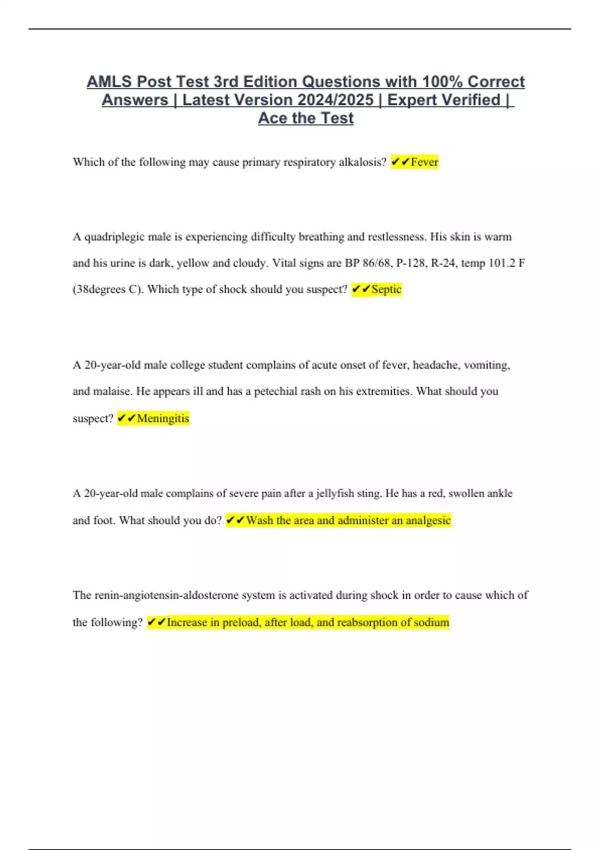 AMLS Post Test 3rd Edition Questions with 100% Correct Answers | Latest Version 2024/2025 | Expert Verified | Ace the Test