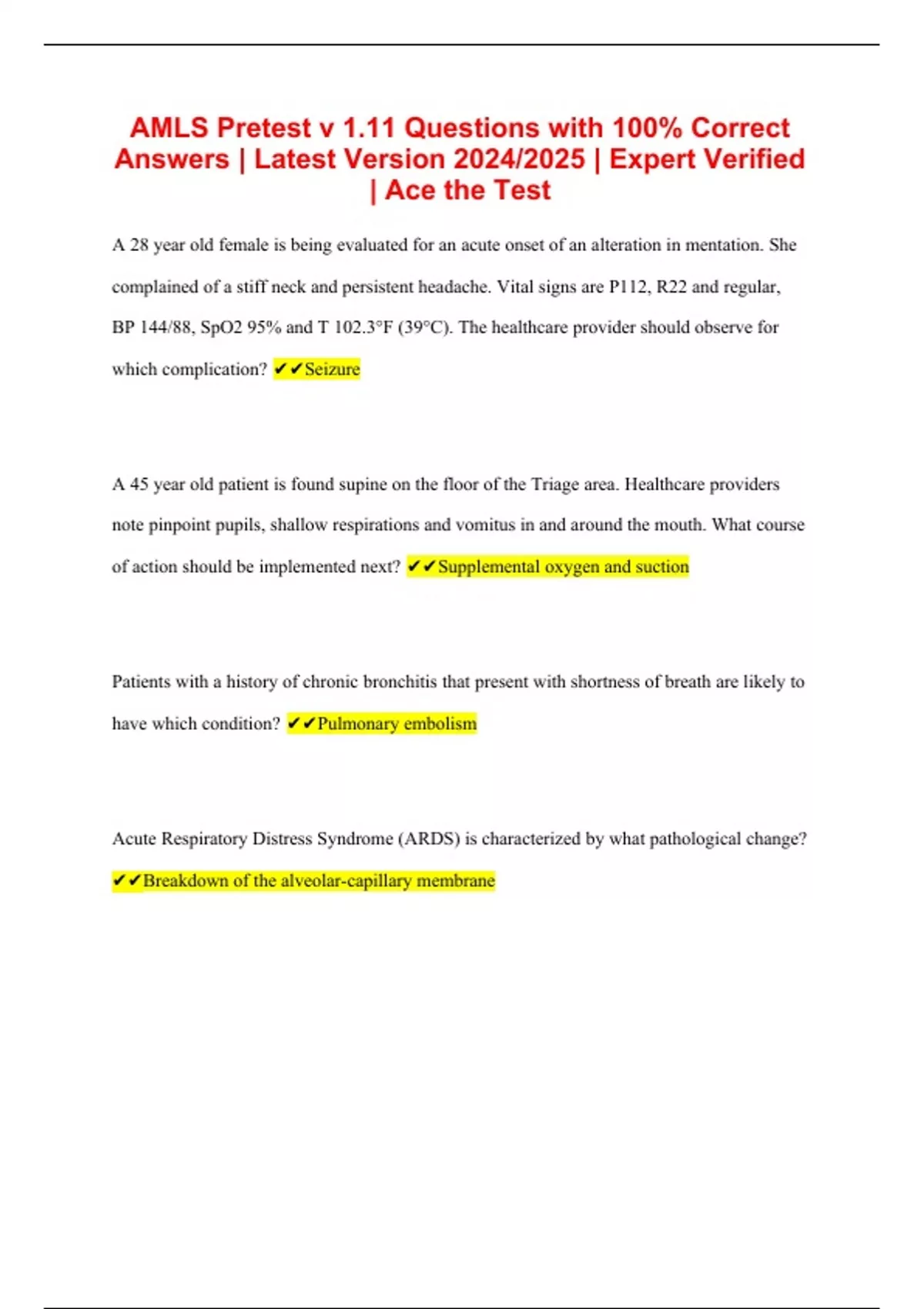 amls pretest v 111 questions with 100 correct an