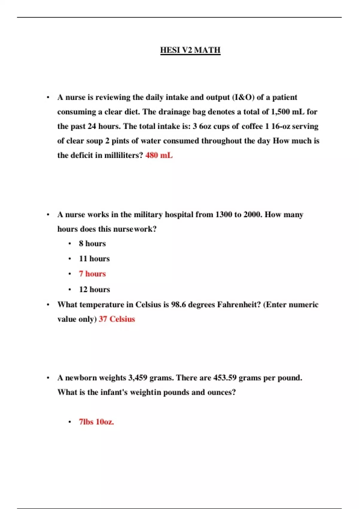 HESI A2 HESI MATH V2 QUESTIONS AND ANSWERS