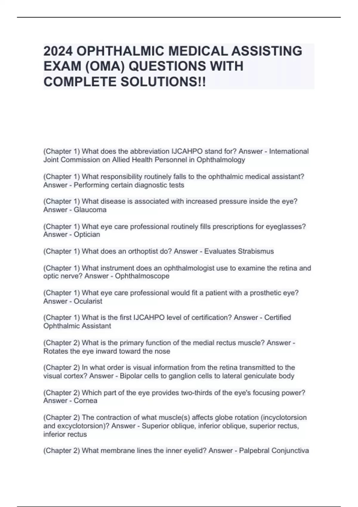 2024 OPHTHALMIC MEDICAL ASSISTING EXAM (OMA) QUESTIONS WITH COMPLETE SOLUTIONS!!