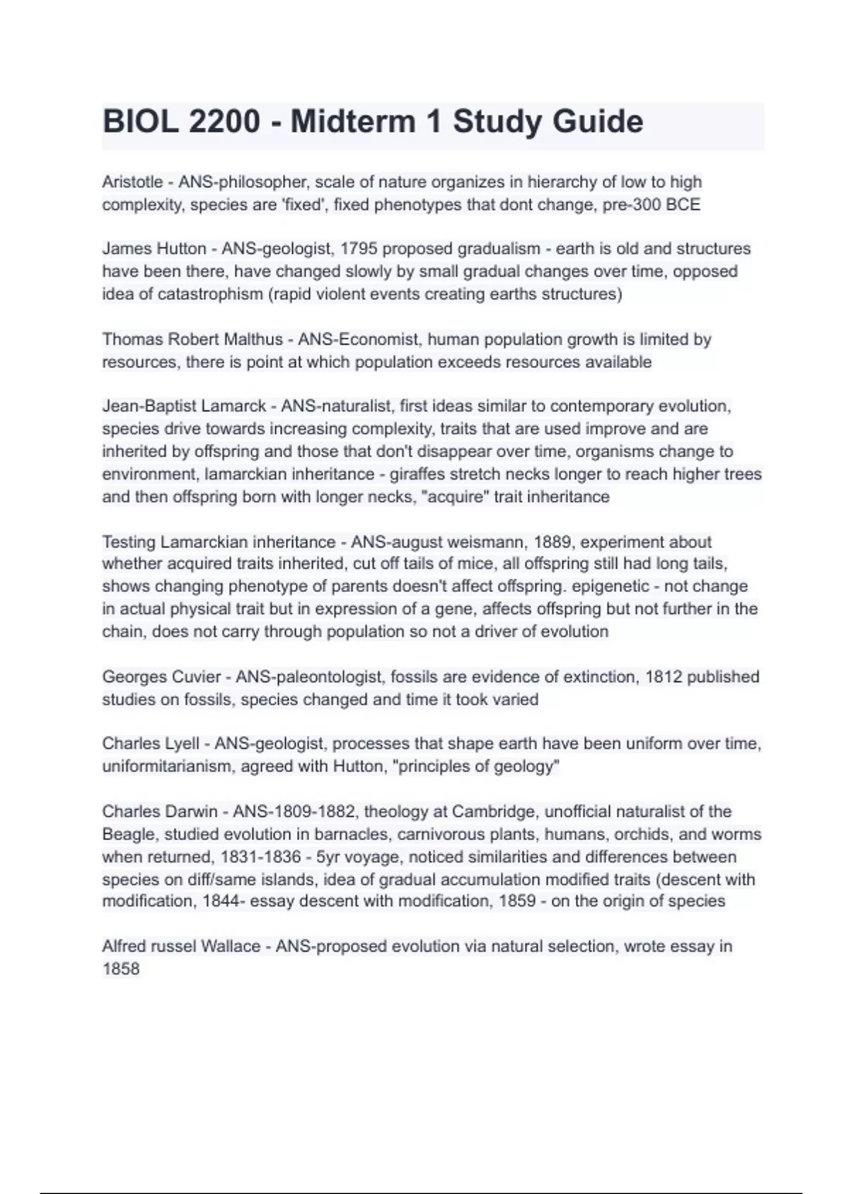 BIOL 2200 - Midterm 1 Study Guide With complete solution