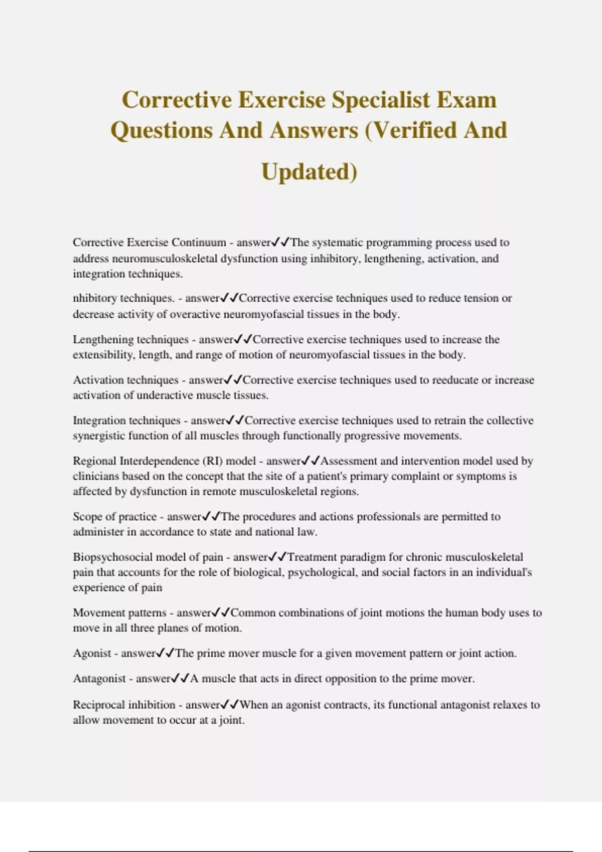 Corrective Exercise Specialist Exam Questions And Answers (Verified And Updated)