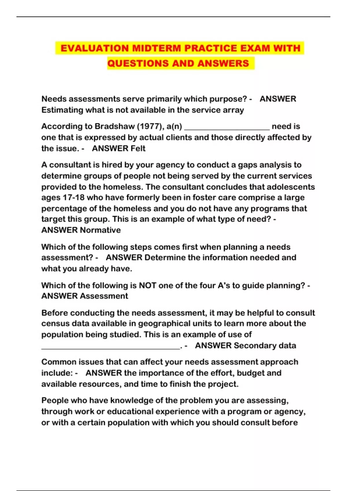 EVALUATION MIDTERM PRACTICE EXAM WITH QUESTIONS AND ANSWERS ...