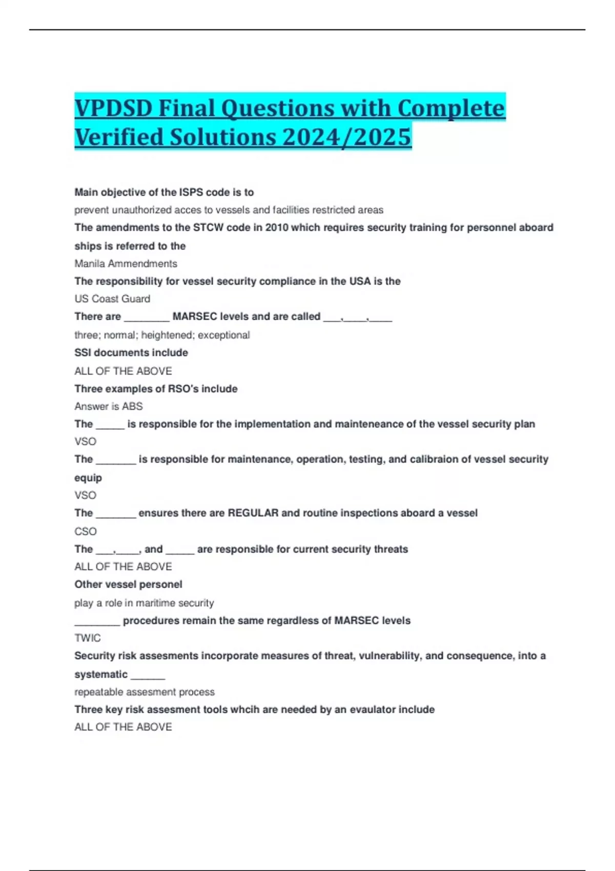 VPDSD Final Questions with Complete Verified Solutions 2024/2025
