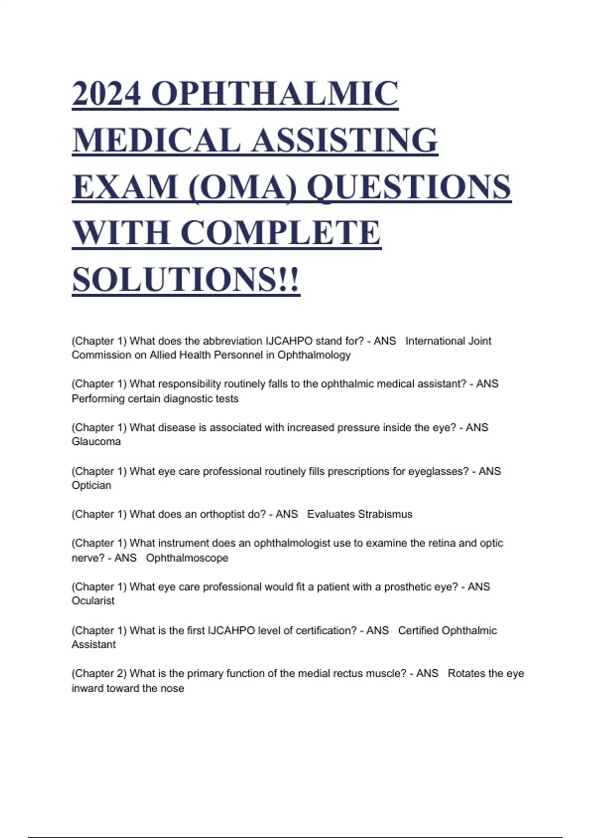 2024 OPHTHALMIC MEDICAL ASSISTING EXAM (OMA) QUESTIONS WITH COMPLETE SOLUTIONS!!