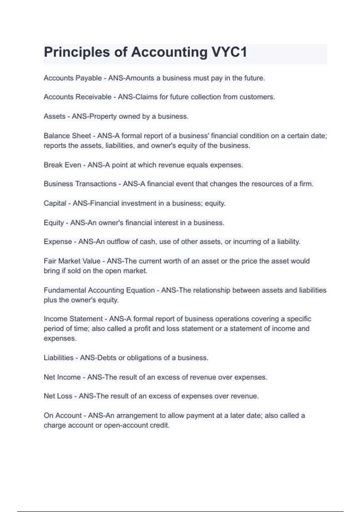 Principles of Accounting VYC1