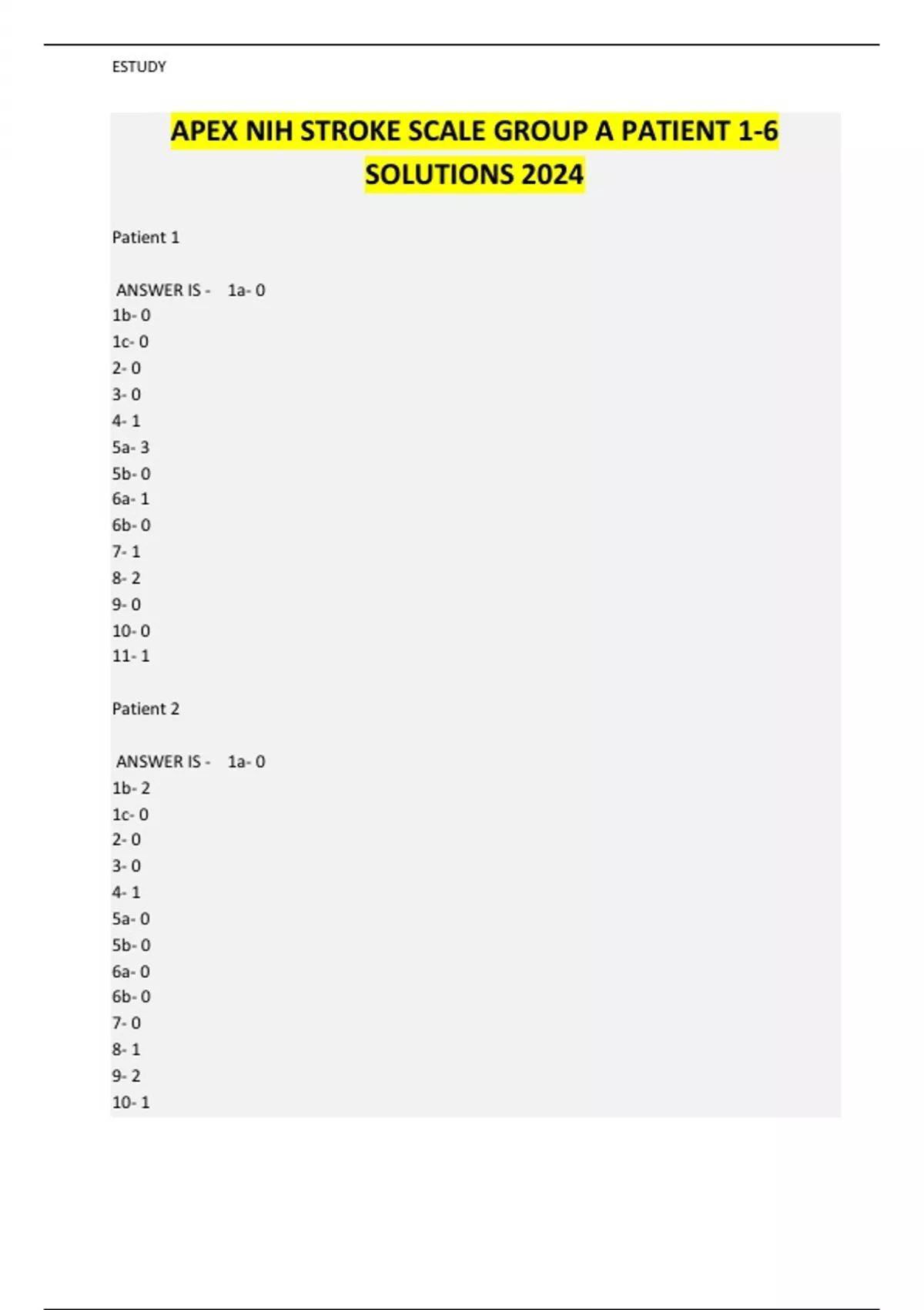 APEX NIH STROKE SCALE GROUP A PATIENT 1-6 SOLUTIONS 2024