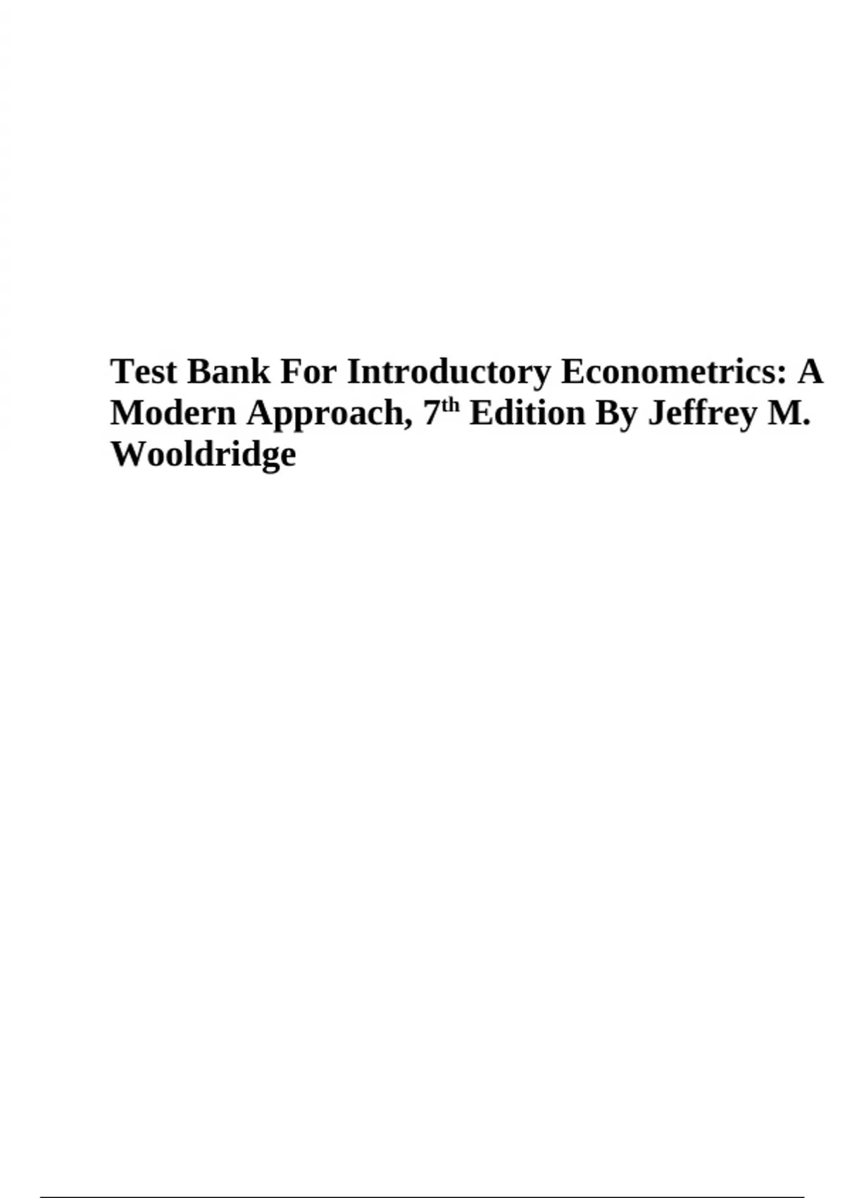 Test Bank For Introductory Econometrics: A Modern Approach, 7th Edition By Jeffrey M. Wooldridge | VERIFIED.