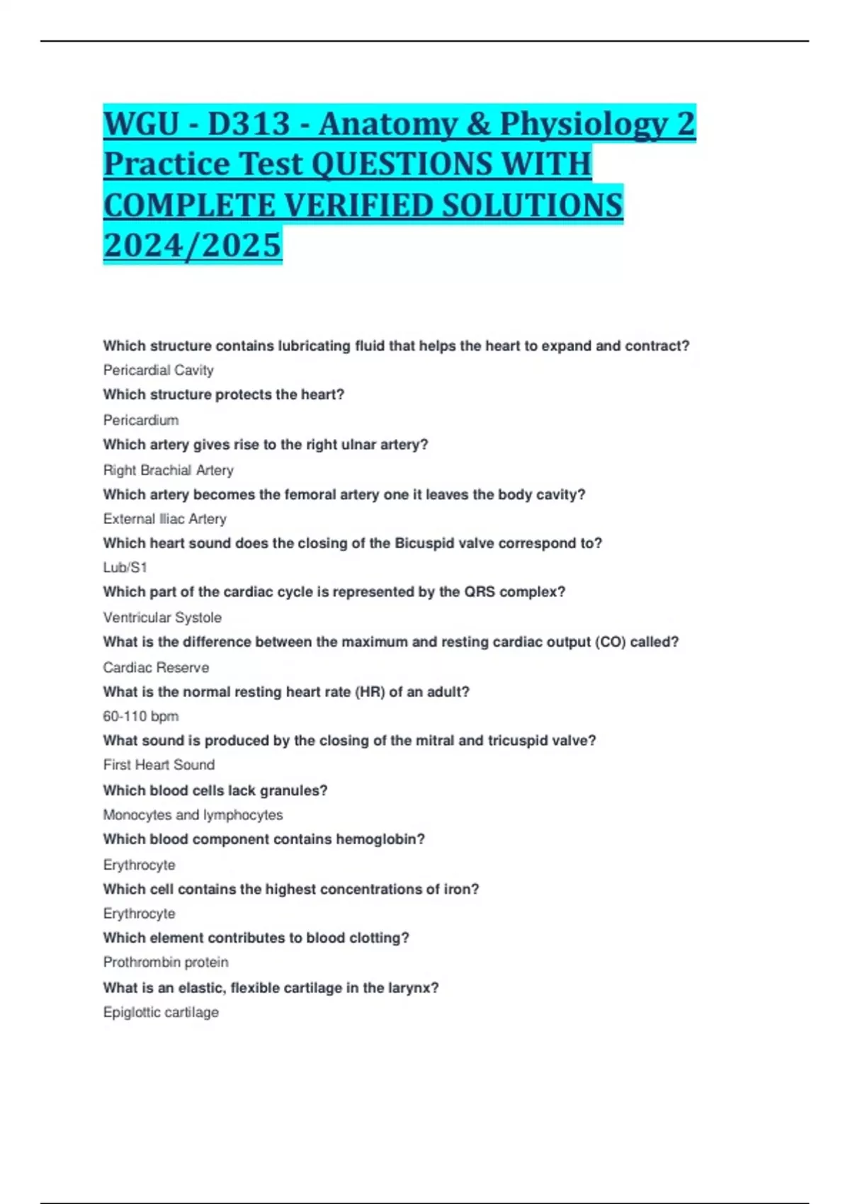 WGU - D313 - Anatomy & Physiology 2 Practice Test QUESTIONS WITH COMPLETE VERIFIED SOLUTIONS 2024/2025