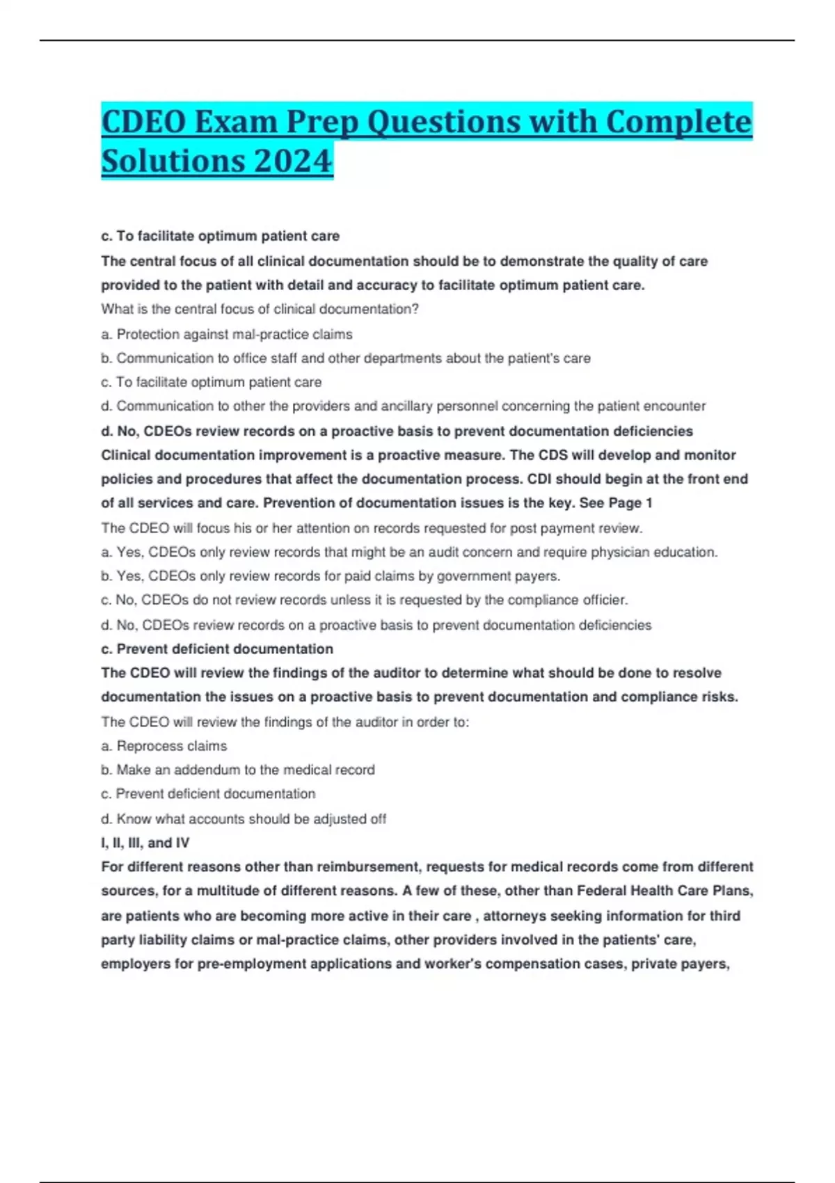 CDEO Exam Prep Questions with Complete Solutions 2024