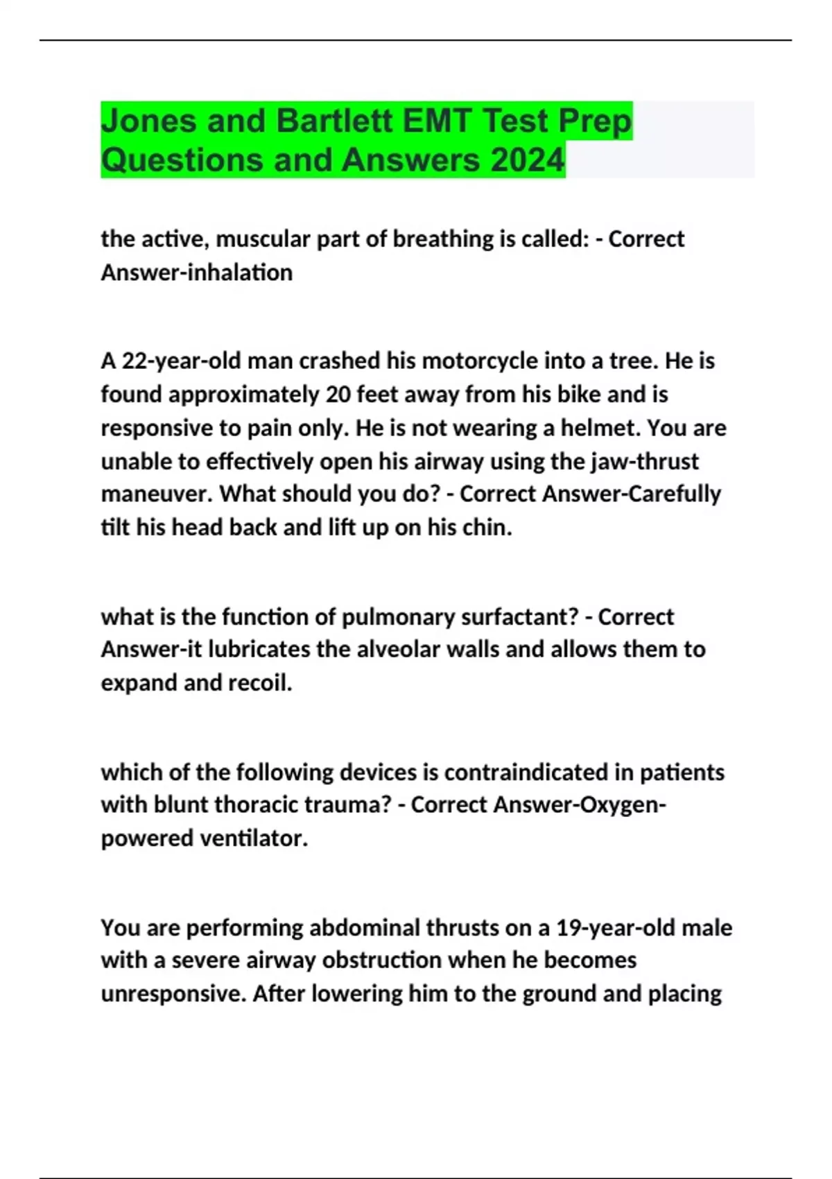 Jones and Bartlett EMT Test Prep Questions and Answers 2024