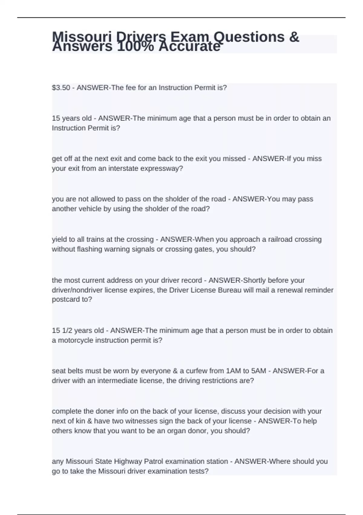 Missouri Drivers Exam Questions & Answers 100% Accurate
