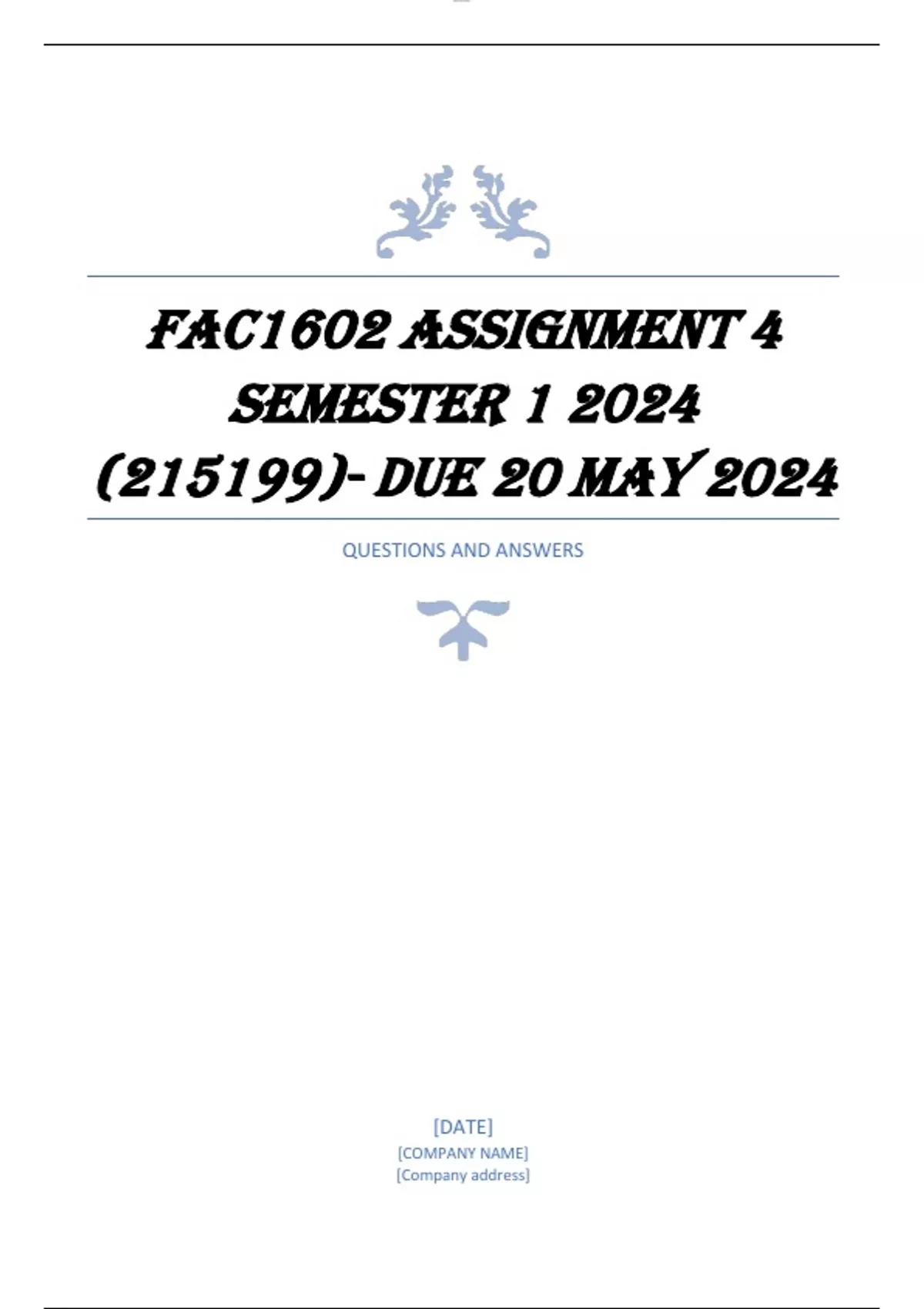 FAC1602 Assignment 4 Semester 1 2024 QUESTIONS WITH ANSWERS