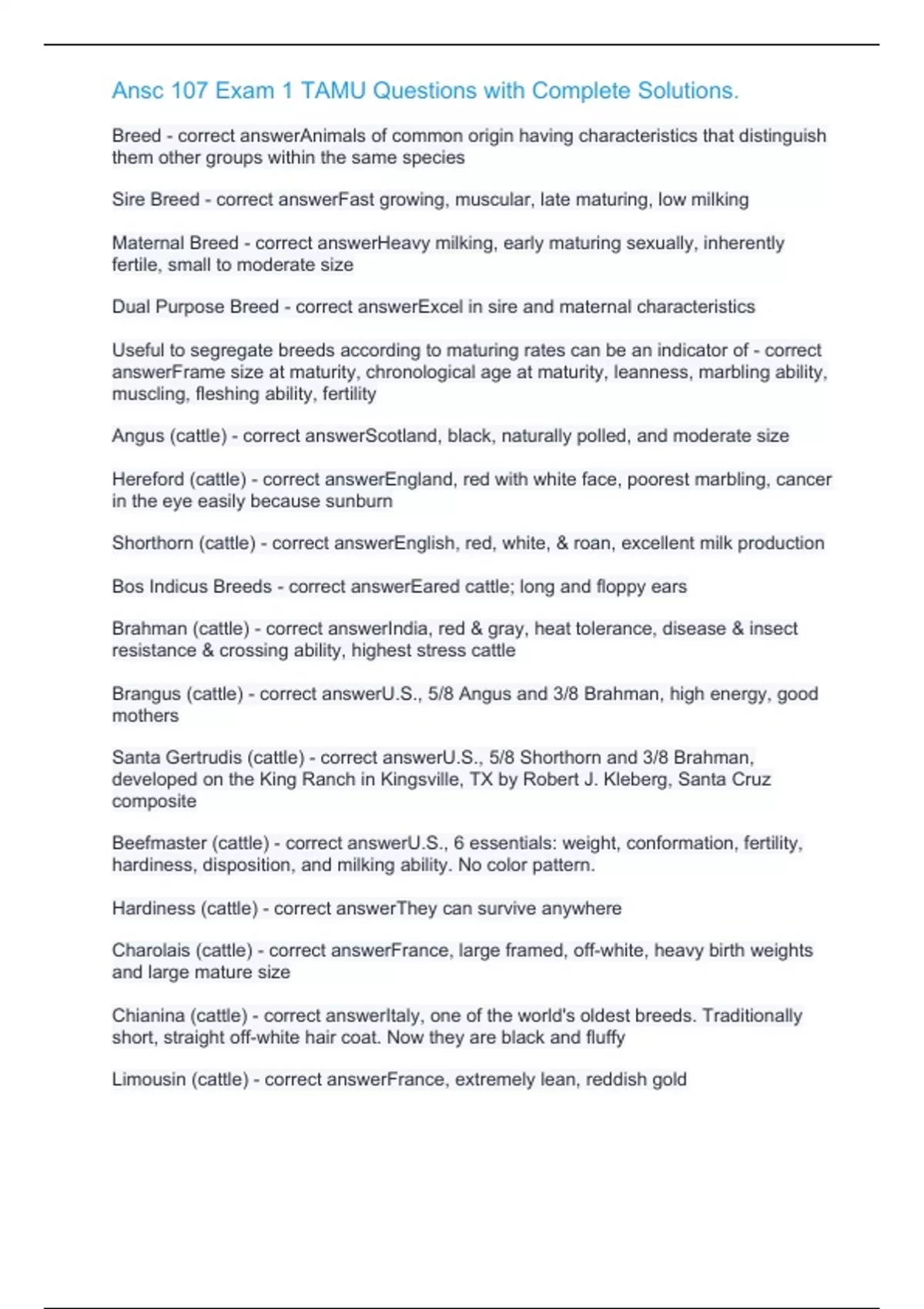 Ansc 107 Exam 1 TAMU Questions with Complete Solutions.Ansc 107 Exam 1 TAMU Questions with Complete Solutions.