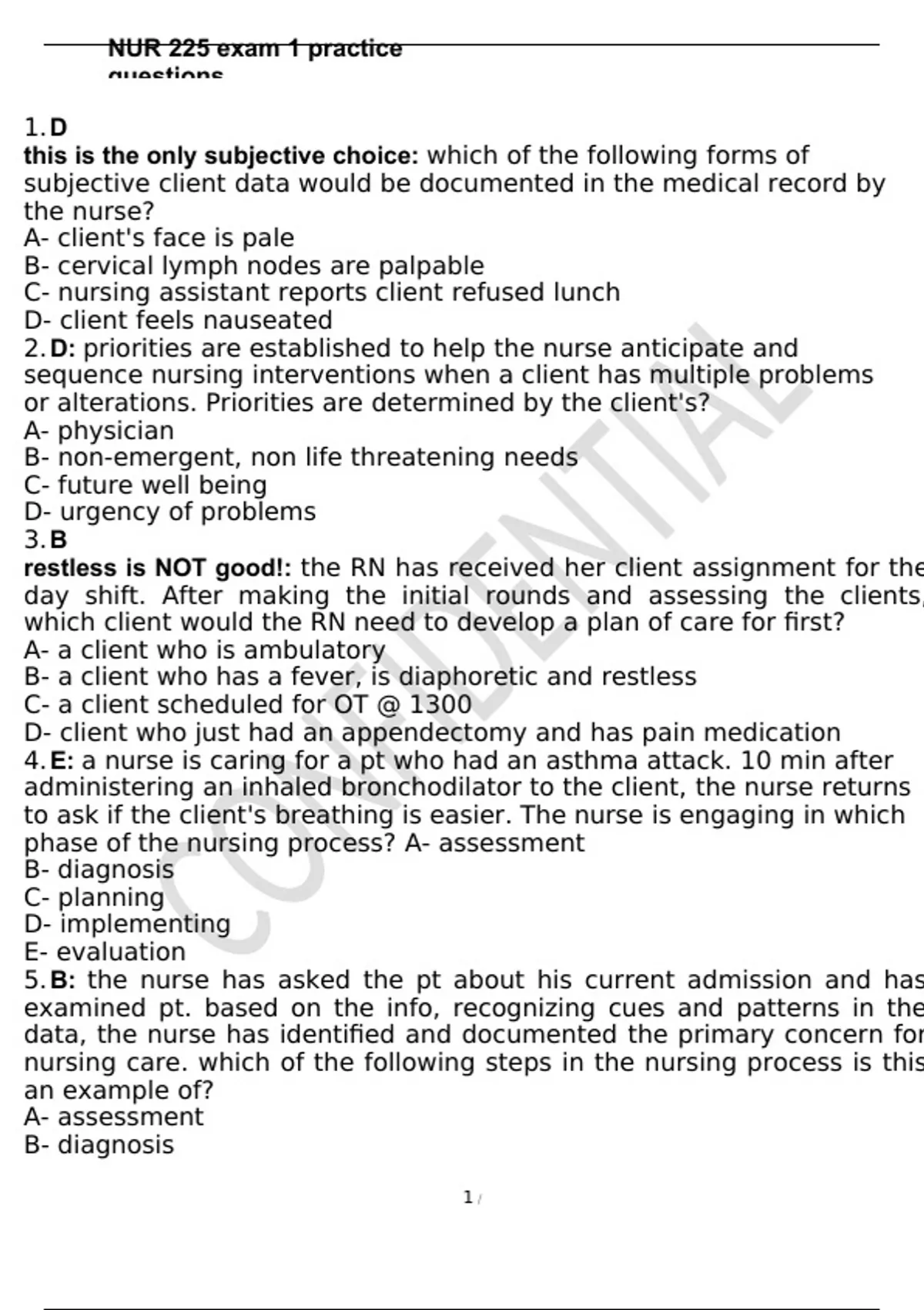 , NUR 225 exam 1 practice