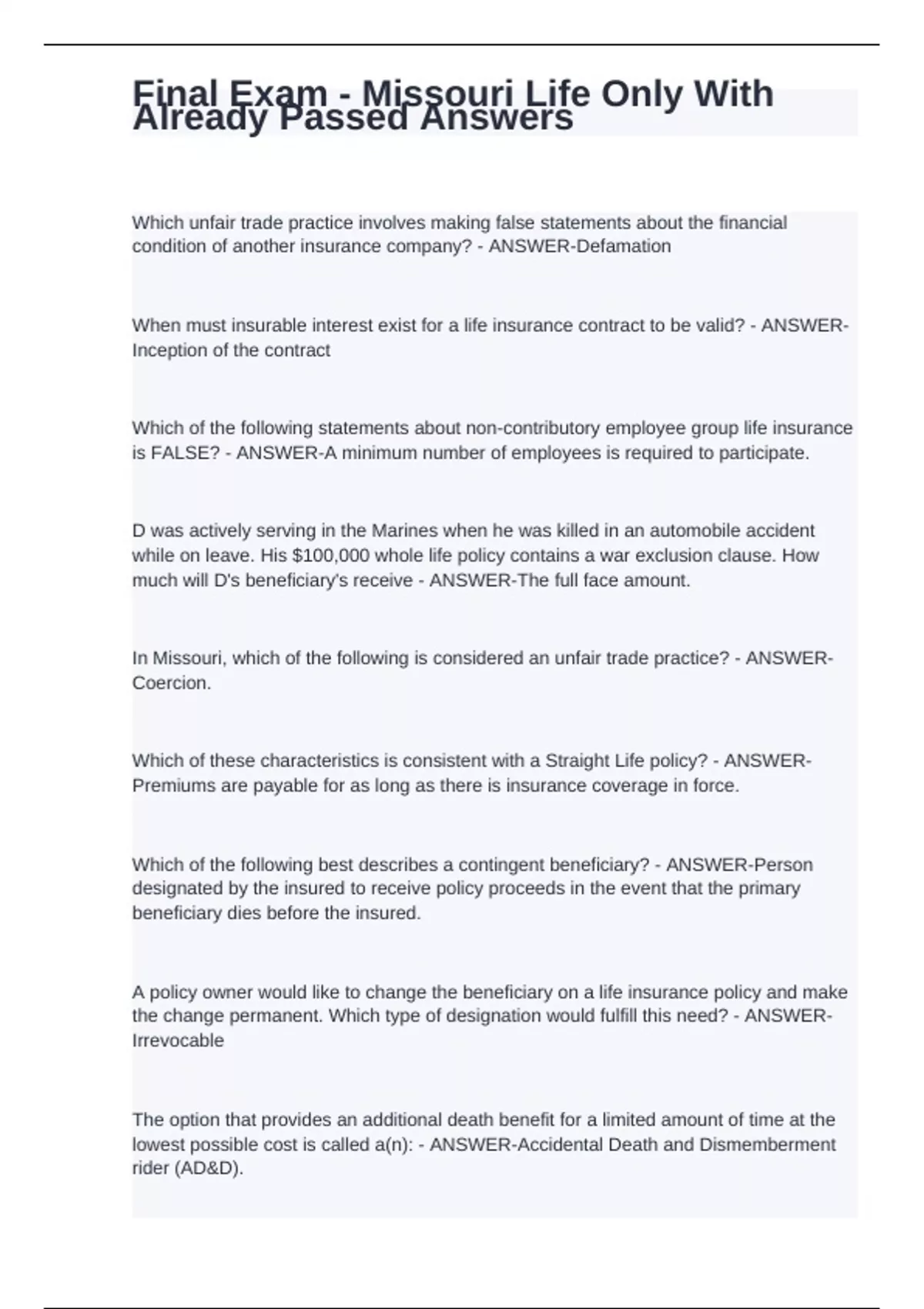 much will D's beneficiary's receive - ANSWER-The full face amount.