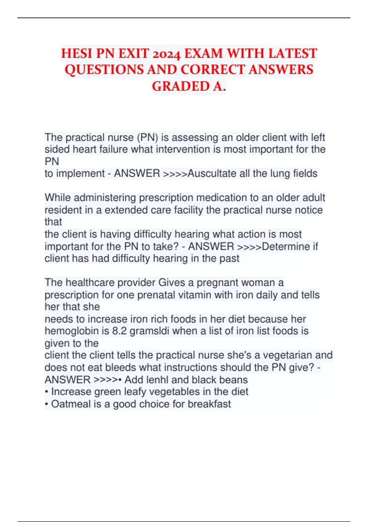 HESI PN EXIT 2024 EXAM WITH LATESTQUESTIONS AND CORRECT ANSWERS GRADED A.HESI PN EXIT 2024 EXAM WITH LATESTQUESTIONS AND CORRECT ANSWERS GRADED A.HESI PN EXIT 2024 EXAM WITH LATESTQUESTIONS AND CORRECT ANSWERS GRADED A.HESI PN EXIT 2024 EXAM WITH LATESTQUESTIONS AND CORRECT ANSWERS GRADED A.