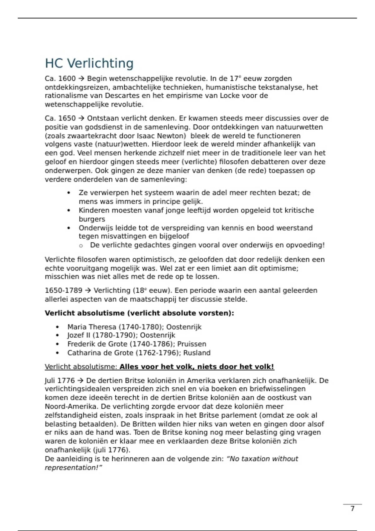 1650-1789 Verlichting (18e eeuw). Een periode waarin een aantal geleerden