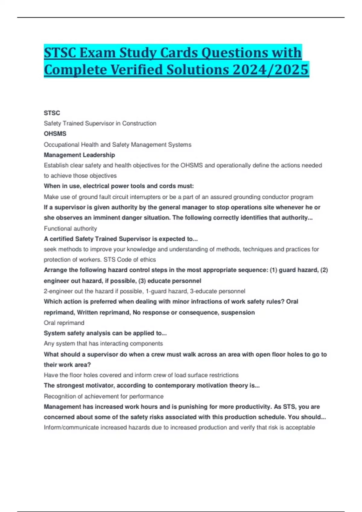STSC Exam Study Cards Questions with Complete Verified Solutions 2024/2025