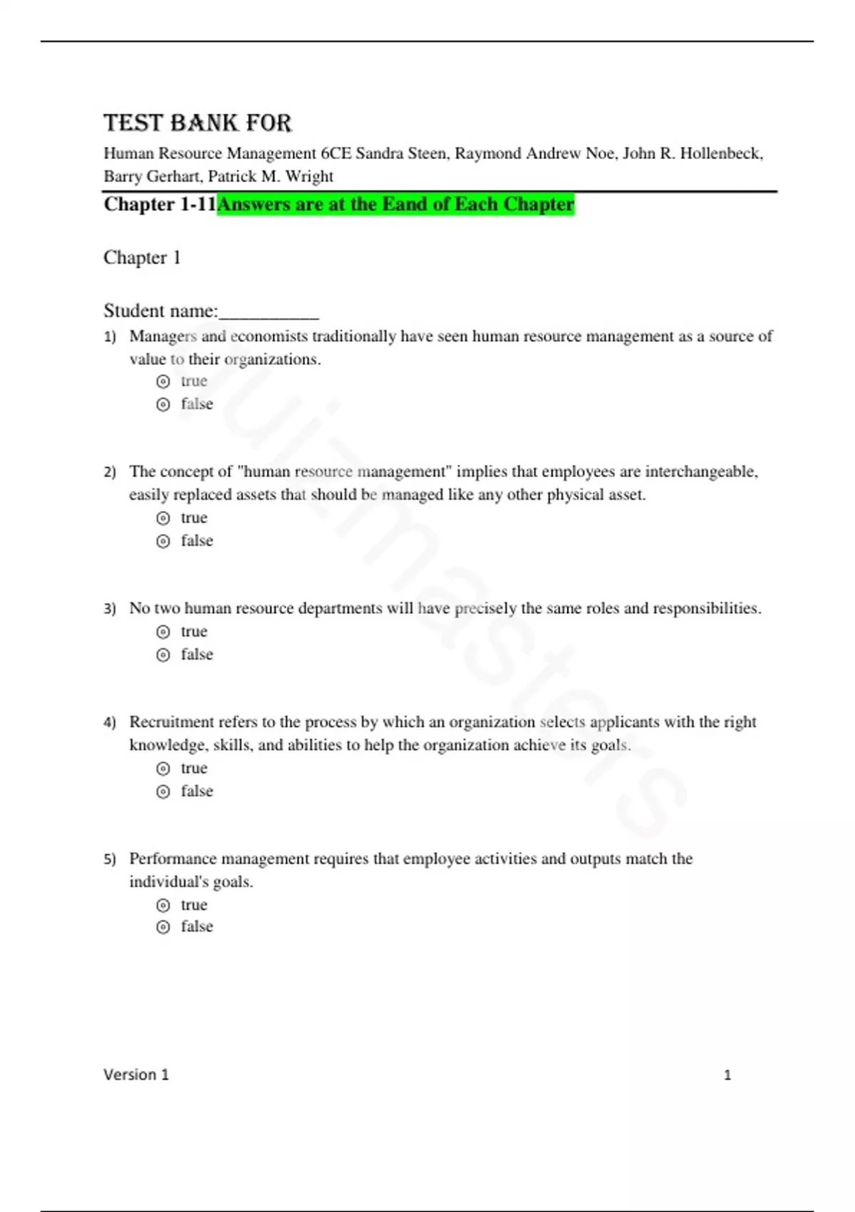 Test Bank for Human Resource Management, 6th Canadian Edition by Sandra Steen